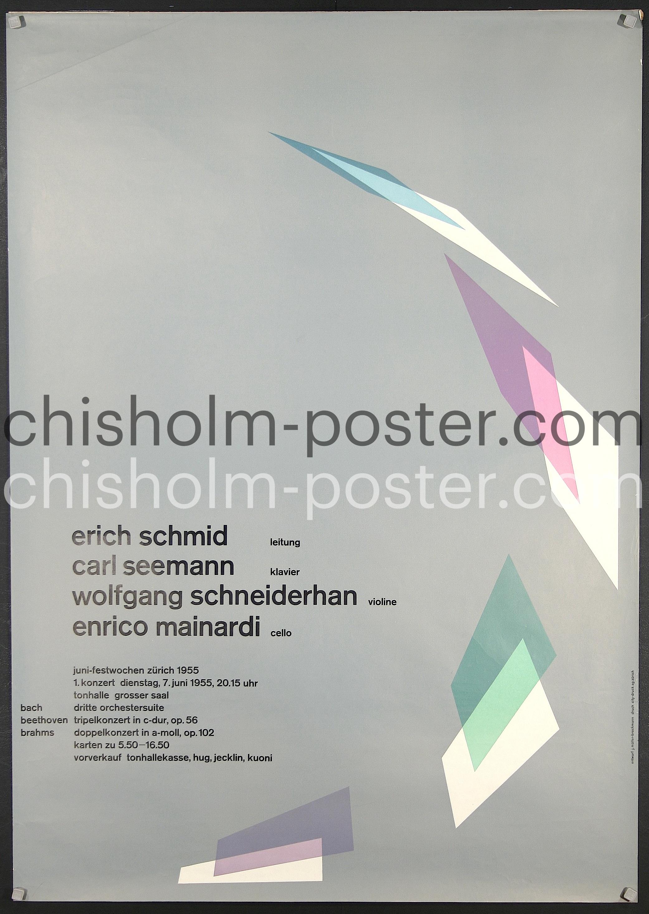 Original Vintage Poster: Juni - Festwochen Zurich 1955, Erich Schmid, Carl Seemann, Wolfgang Schneiderhan, Enrico Mainardi