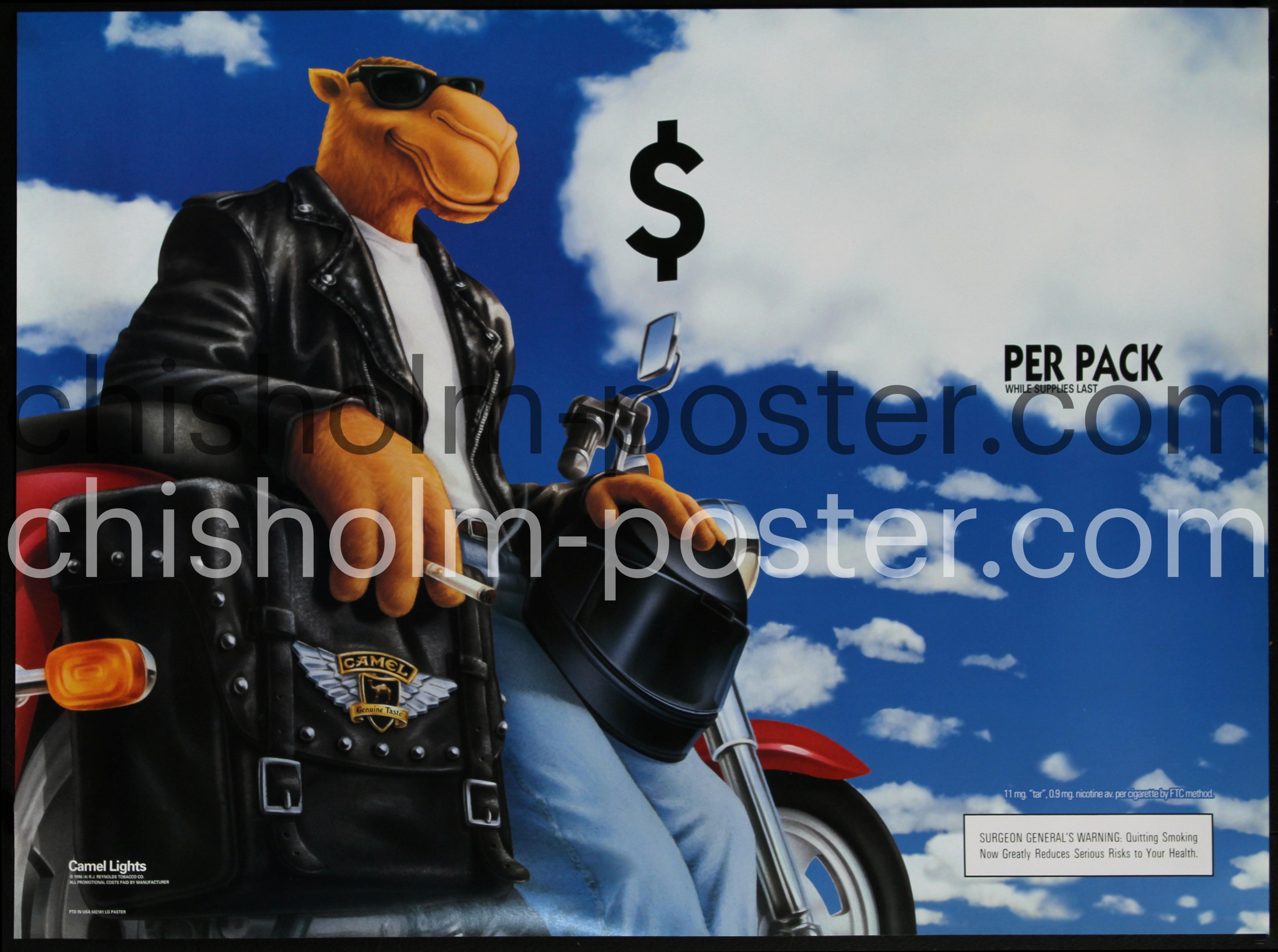 Original Vintage Poster: Camel Lights - Motorcycle, Blank Price signage - Joe Camel