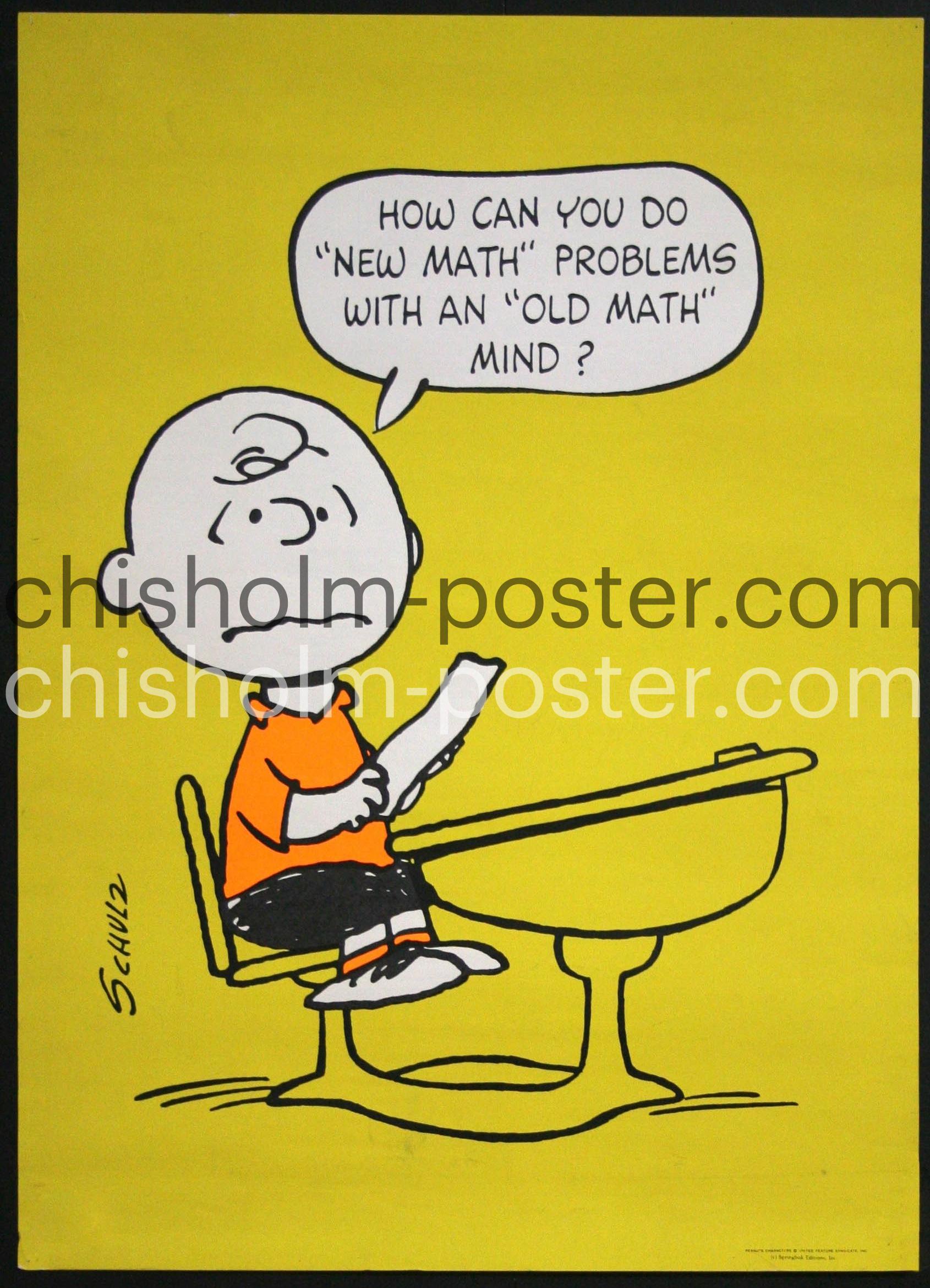Original Vintage Poster: Charlie Brown - Peanuts - How Can You do "New Math" Problems with an "Old Math" Mind?