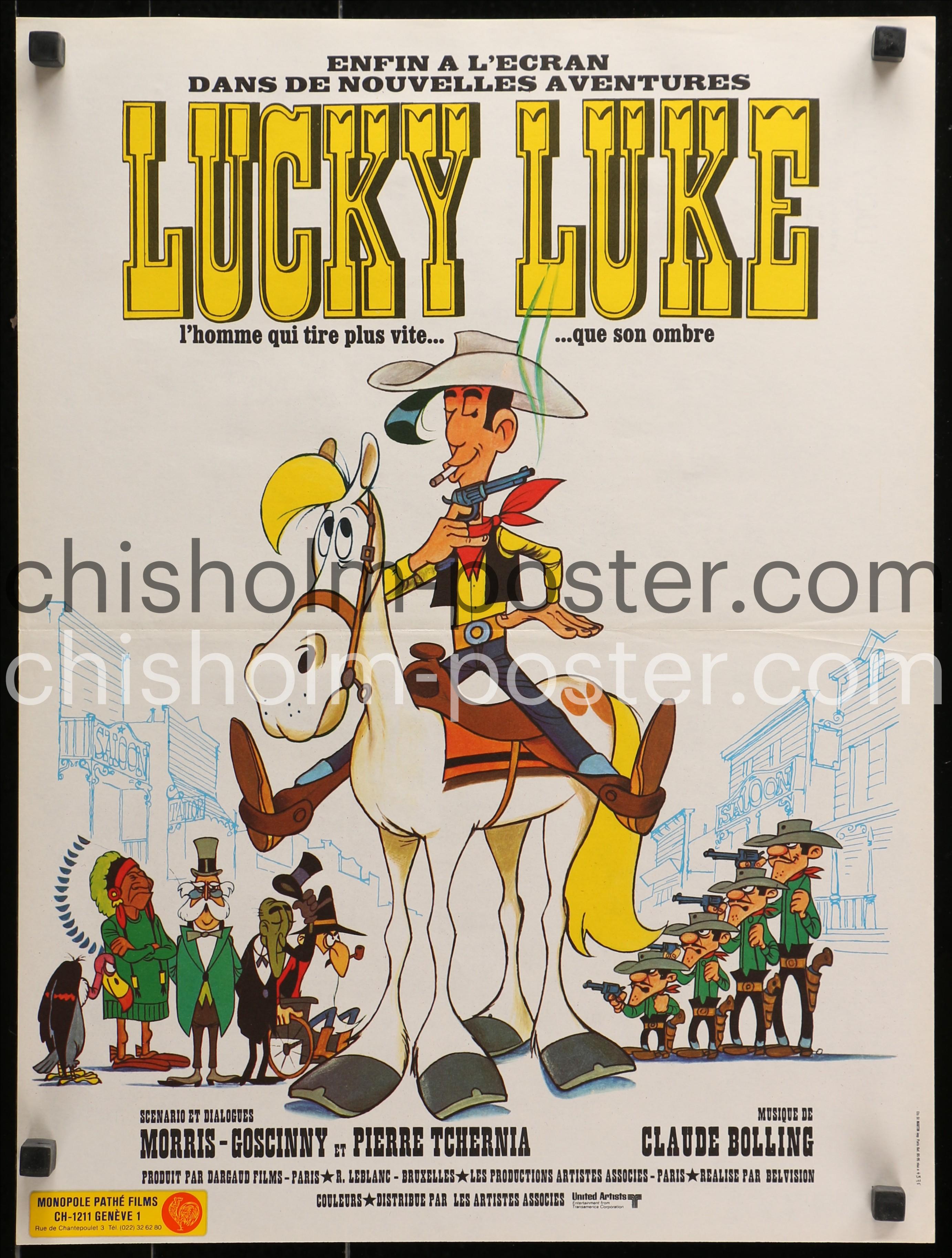 Originally titled "Daisy Town" (released in the U.S. in 1972 as "Lucky Luke"), this is a French poster for the 1971 Rene Goscinny French/Belgian animated animation cartoon cowboy western comedy.