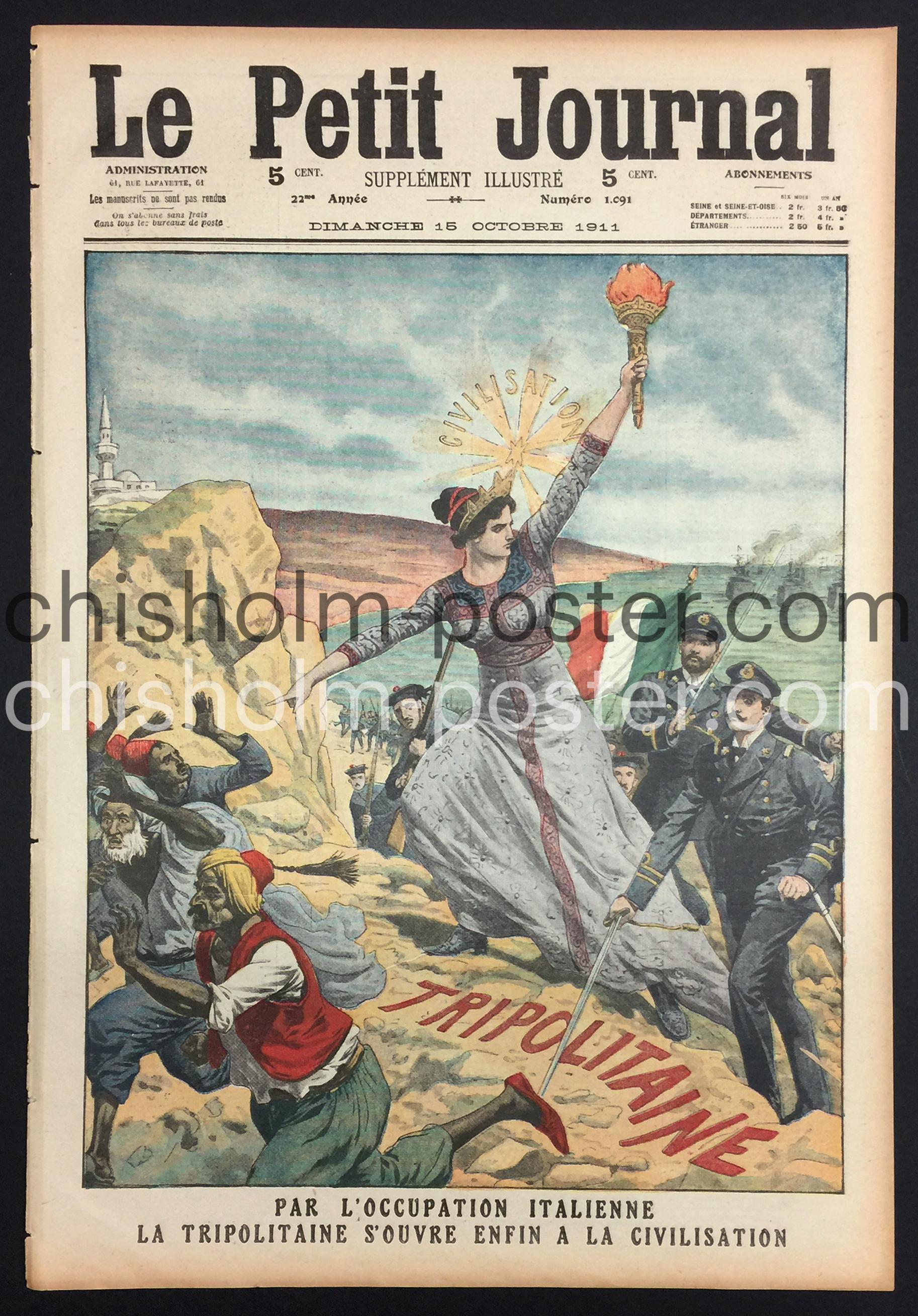 Original Vintage Poster: Le Petit Journal - Par L'Occupation Italienne La Tripolitaine S'Ouvre Enfin a La Civilisation - 15 Octobre 1911 - (Full Newspaper)