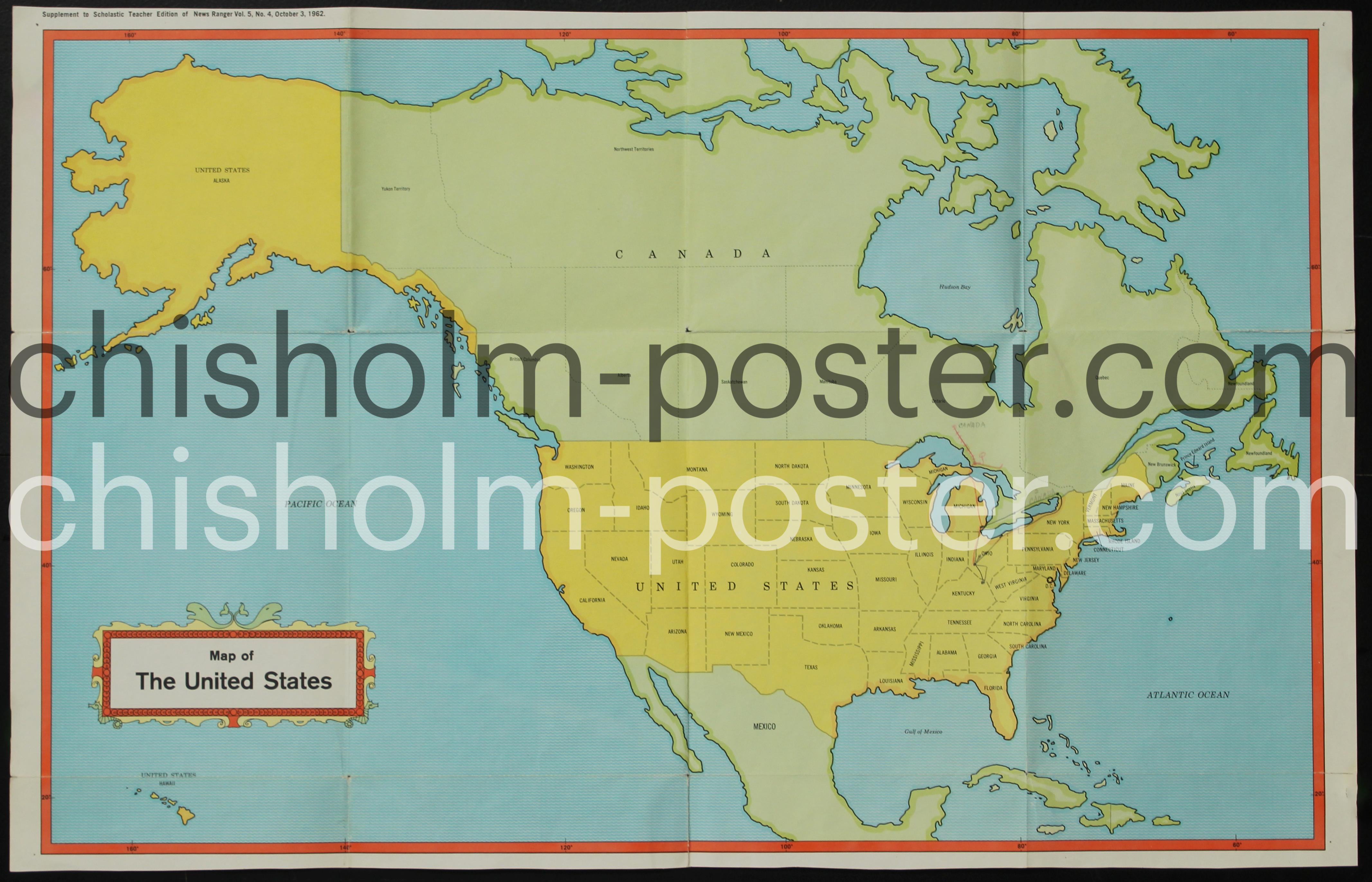 Original Vintage Poster: Map of the United States - Scholastic Supplement 1962