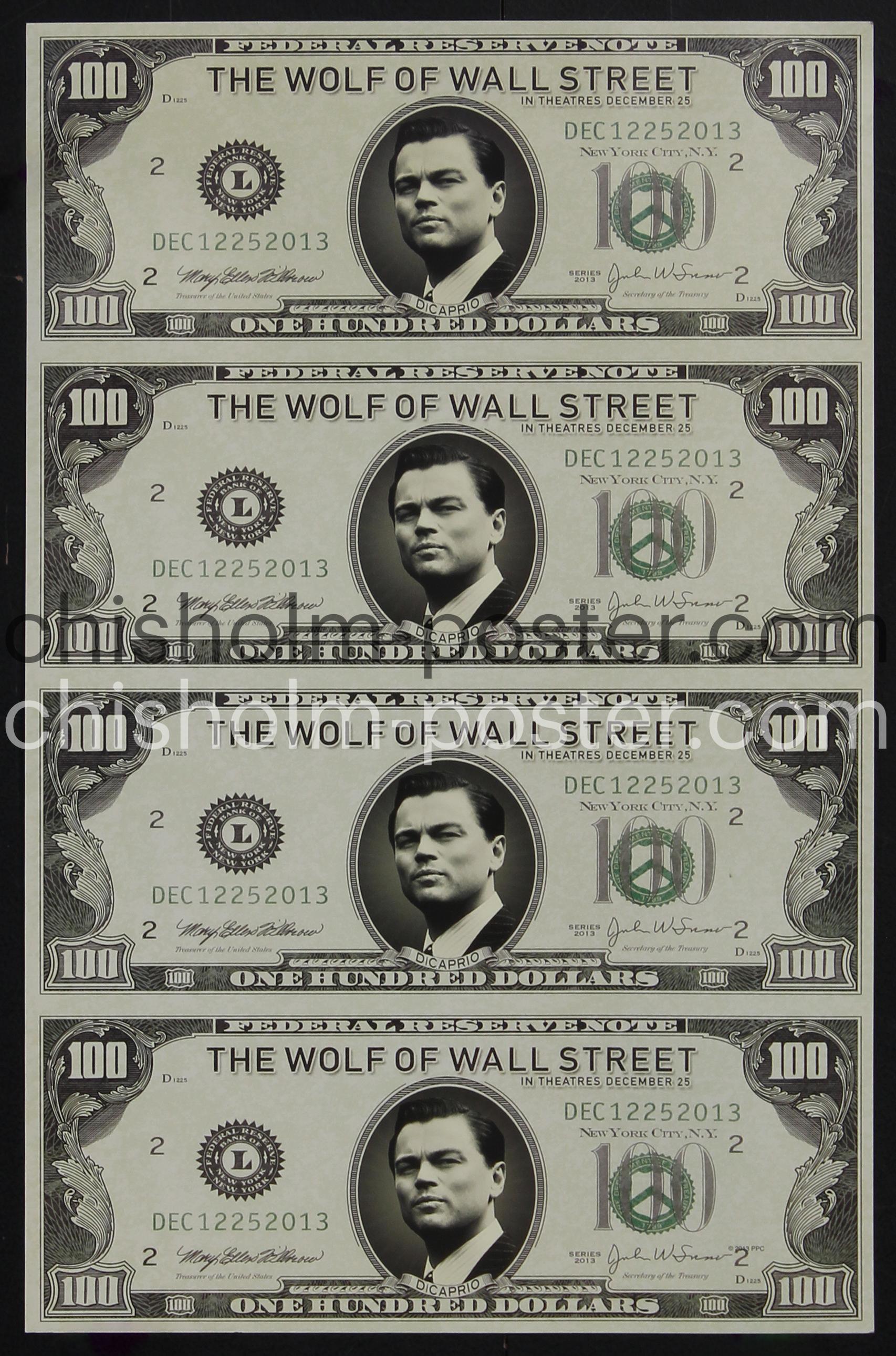 Small format window card poster teaser. The Wolf of Wall Street is a 2013 American epic biographical black comedy crime film co-produced and directed by Martin Scorsese and written by Terence Winter, based on Jordan Belfort's 2007 memoir of the same name. It recounts Belfort's career as a stockbroker in New York City and how his firm, Stratton Oakmont, engaged in rampant corruption and fraud on Wall Street, leading to his downfall. (Wikipedia)