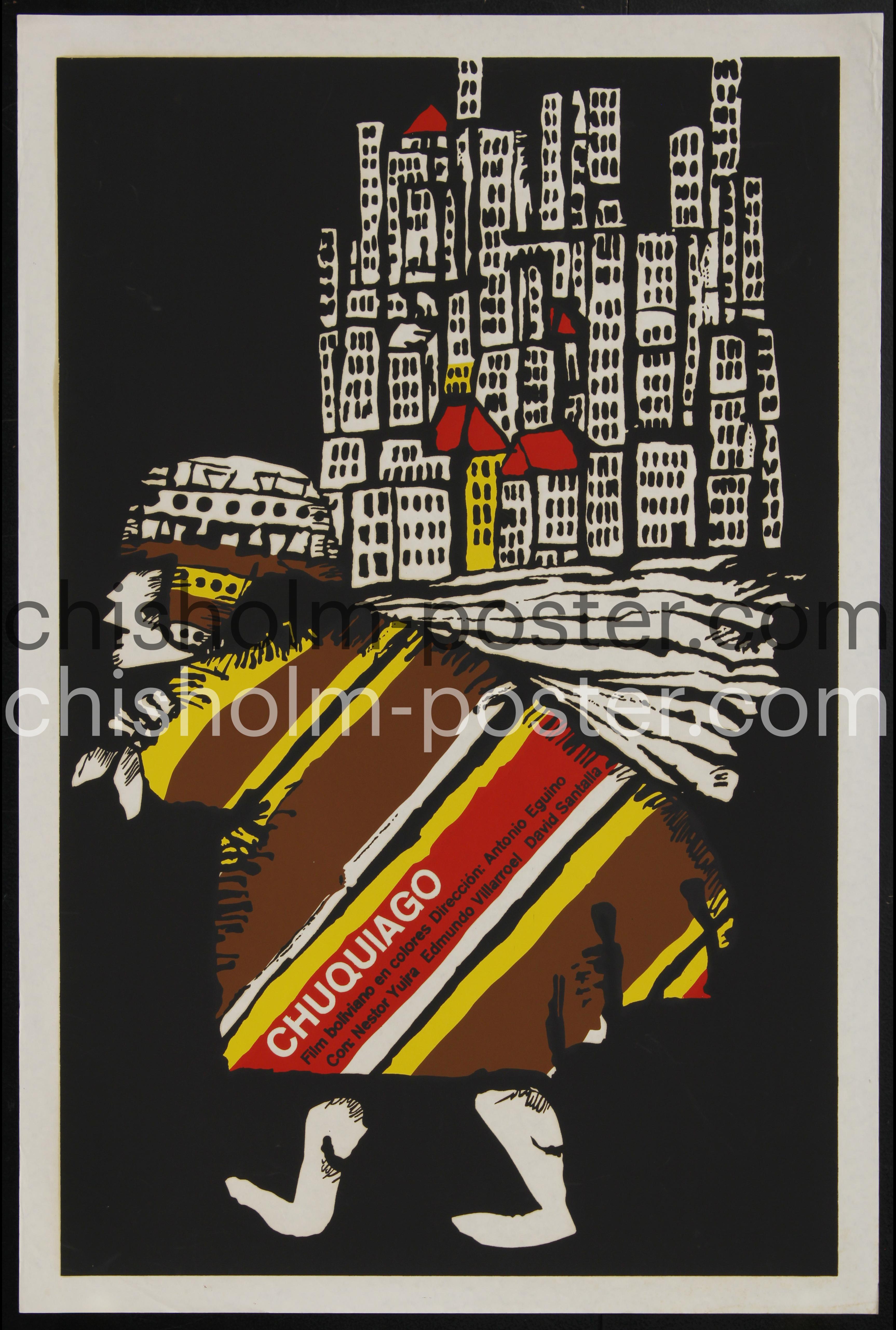 Cuban silkscreened film poster for a 1977 Bolivian film about the racial, social and cultural aspects of La Paz, Bolivia (called Chuquiago by the Aymaras, the indigenous people in the Andes and Altiplano regions of South America). (IMDb)
