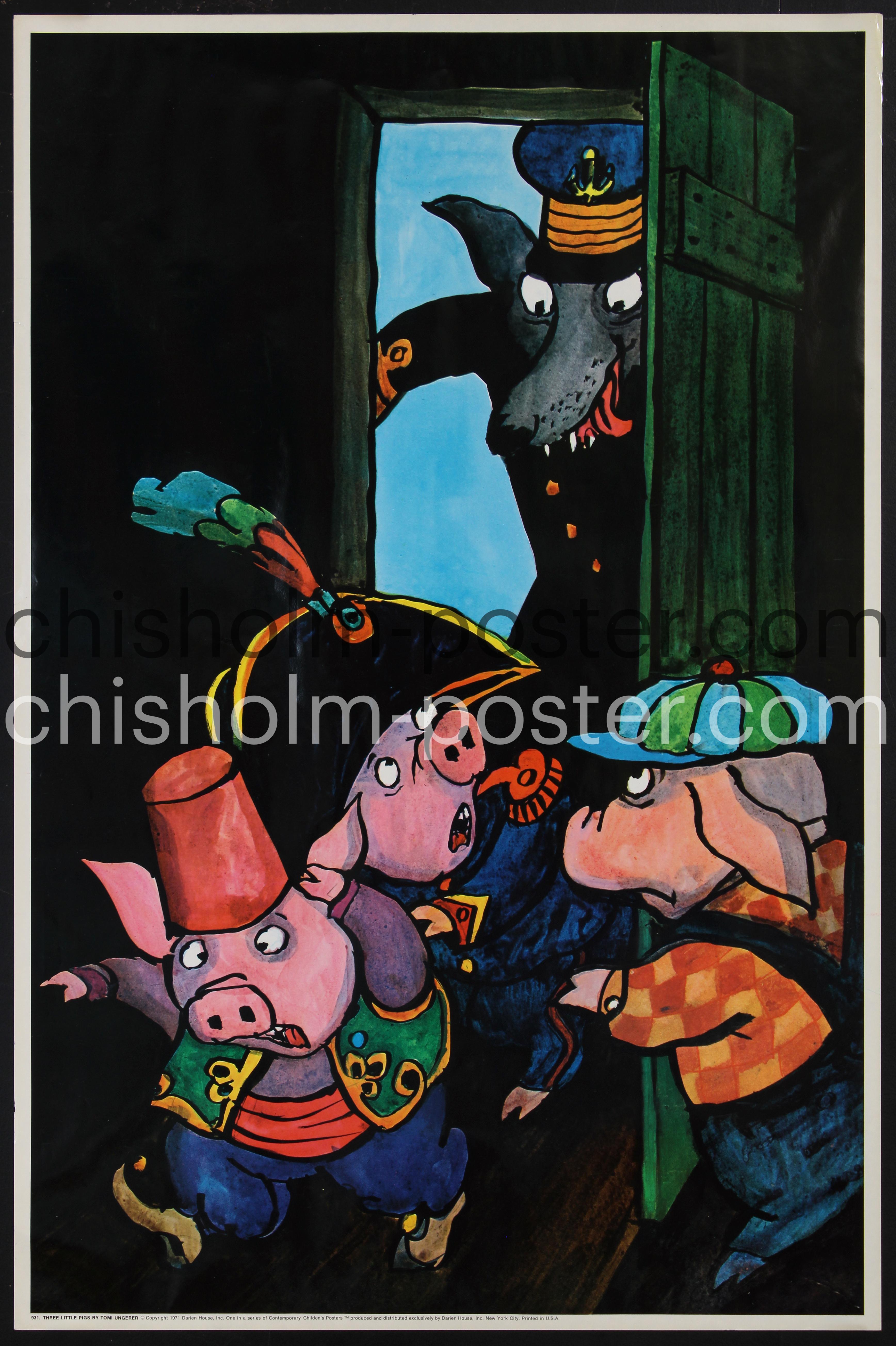 THREE LITTLE PIGS by Tomi Ungerer. Copyright, 1971 Darien House, Inc. One in a series of Contemporary Children's Posters produced and distributed exclusively by Darien House, Inc., New York City. Printed in U.S.A.