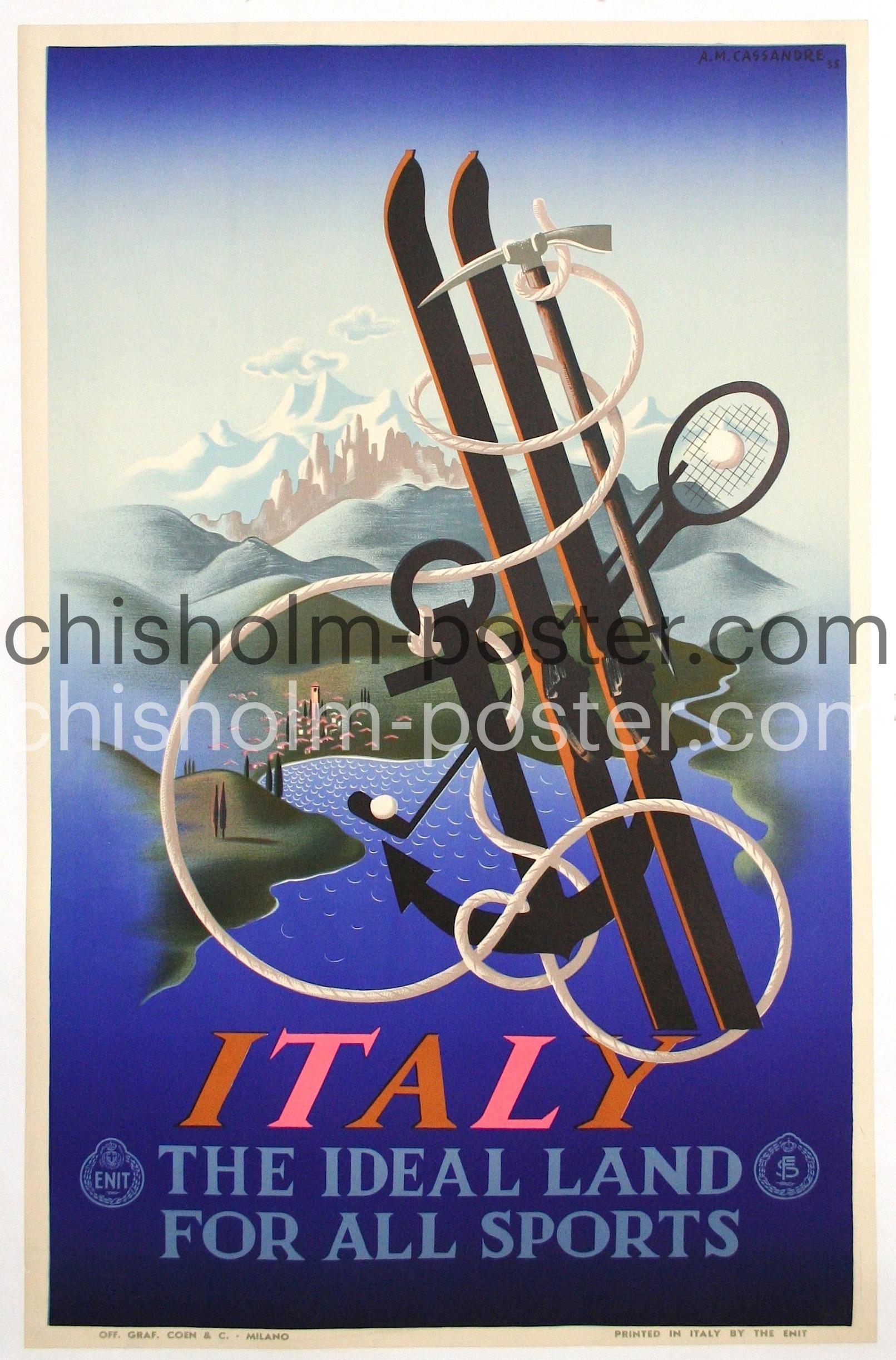 Original Vintage Poster: Italy - The Ideal Land for All Sports