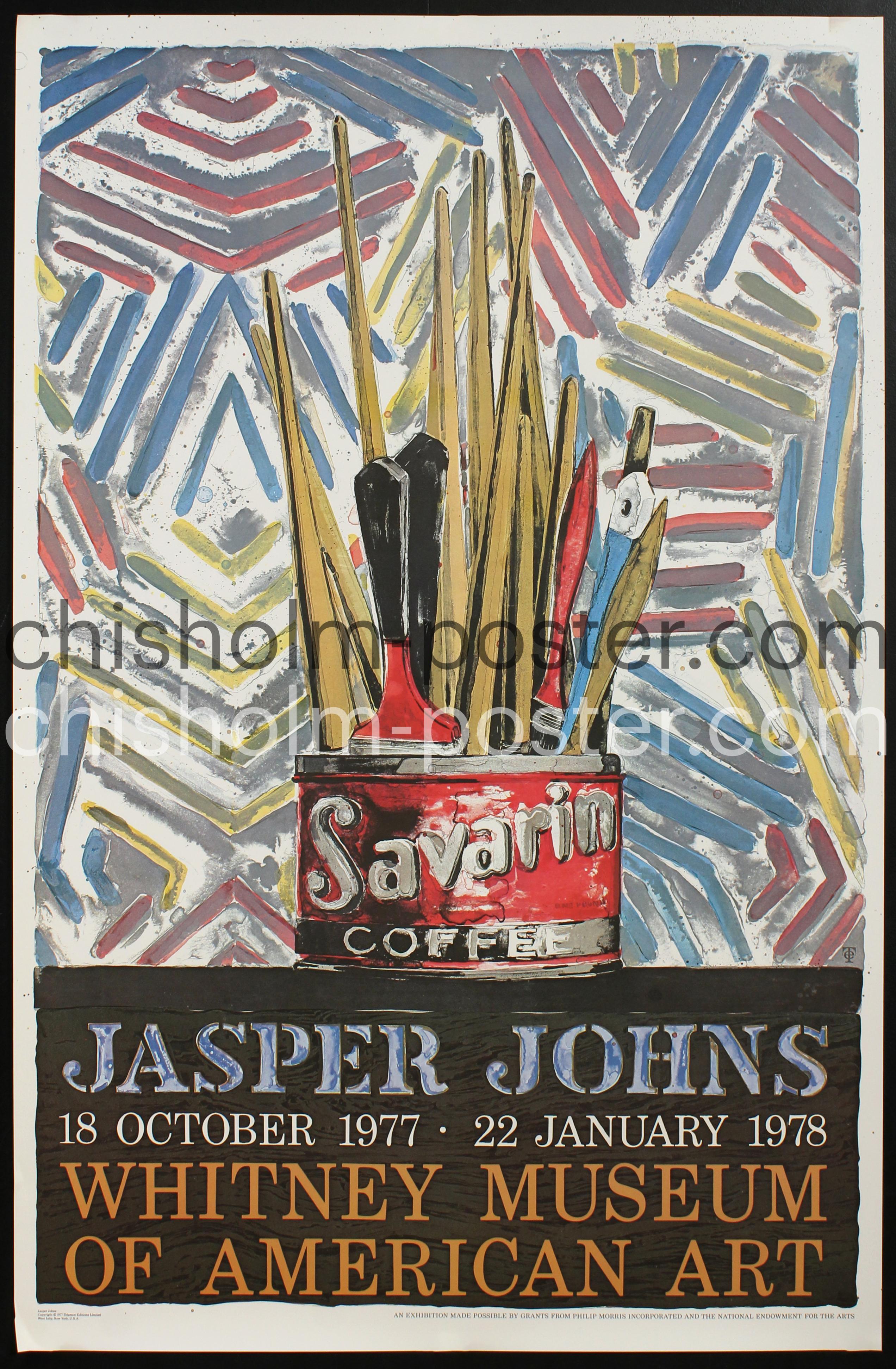 1978 Created in 1960, “Painted Bronze” has been a fixture for more than three decades at the Philadelphia Museum of Art, where it has been on long-term loan from Mr. Johns's personal collection. But now it will migrate north to a permanent home at the Museum of Modern Art, which will receive the sculpture as a promised gift from the collectors Henry R. Kravis and his wife, Marie-Josée Kravis, the Museum of Modern Art's president, who recently bought it. Beautifully lithographed 1978 poster. This motif is based on John's lifesize bronze sculpture of a paintbrush–filled Savarin coffee can (1960).