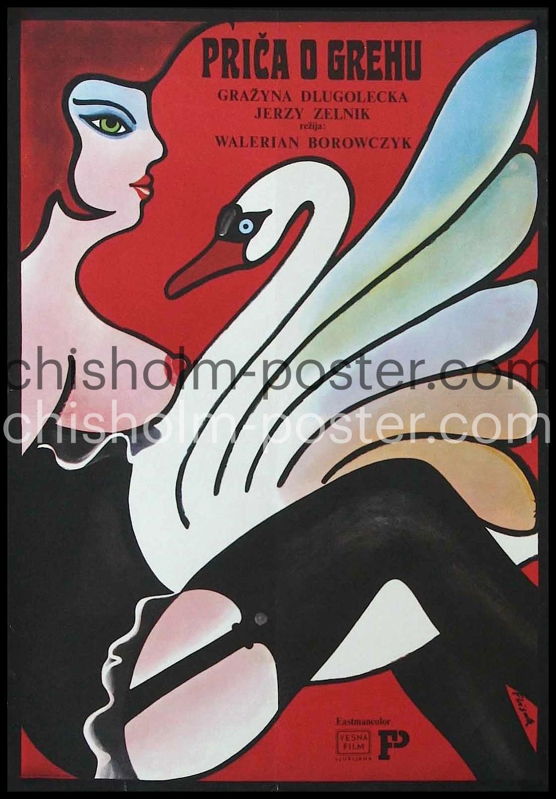 1975 film Dzieje grzechu based on the novel by Stefan Zeromski. Poster depicts Leda and the swan from Greek mythology. PLOT: A beautiful Polish girl traveling around Europe in search of her lover suffers a variety of tragic adventures as the men around her try to fit her into their own selfish schemes. (IMDb)