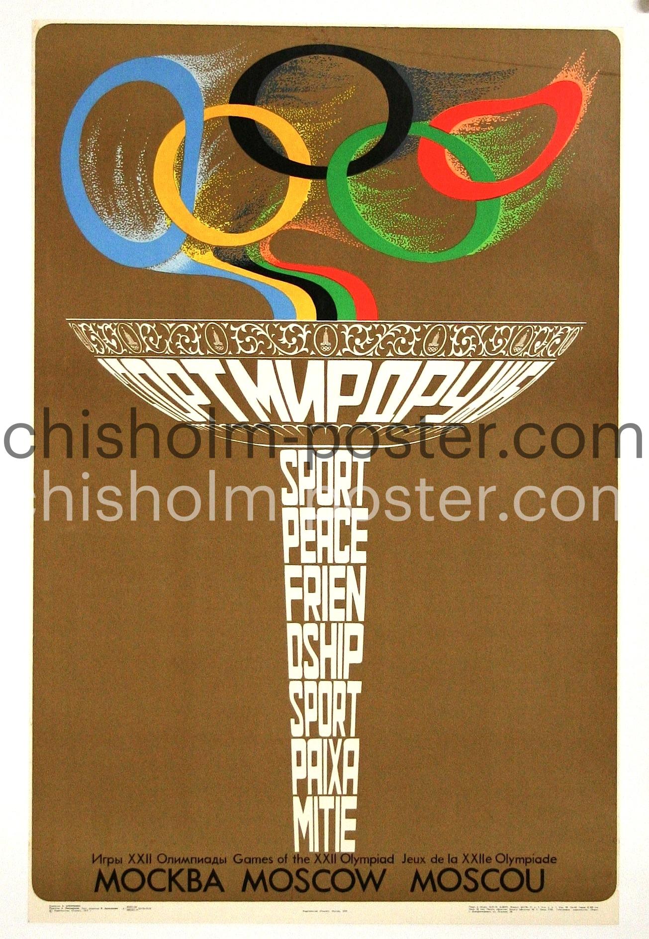 Original Vintage Poster: Russian Olympics 1980 (26) Moscow - Sport, Peace, Friendship
