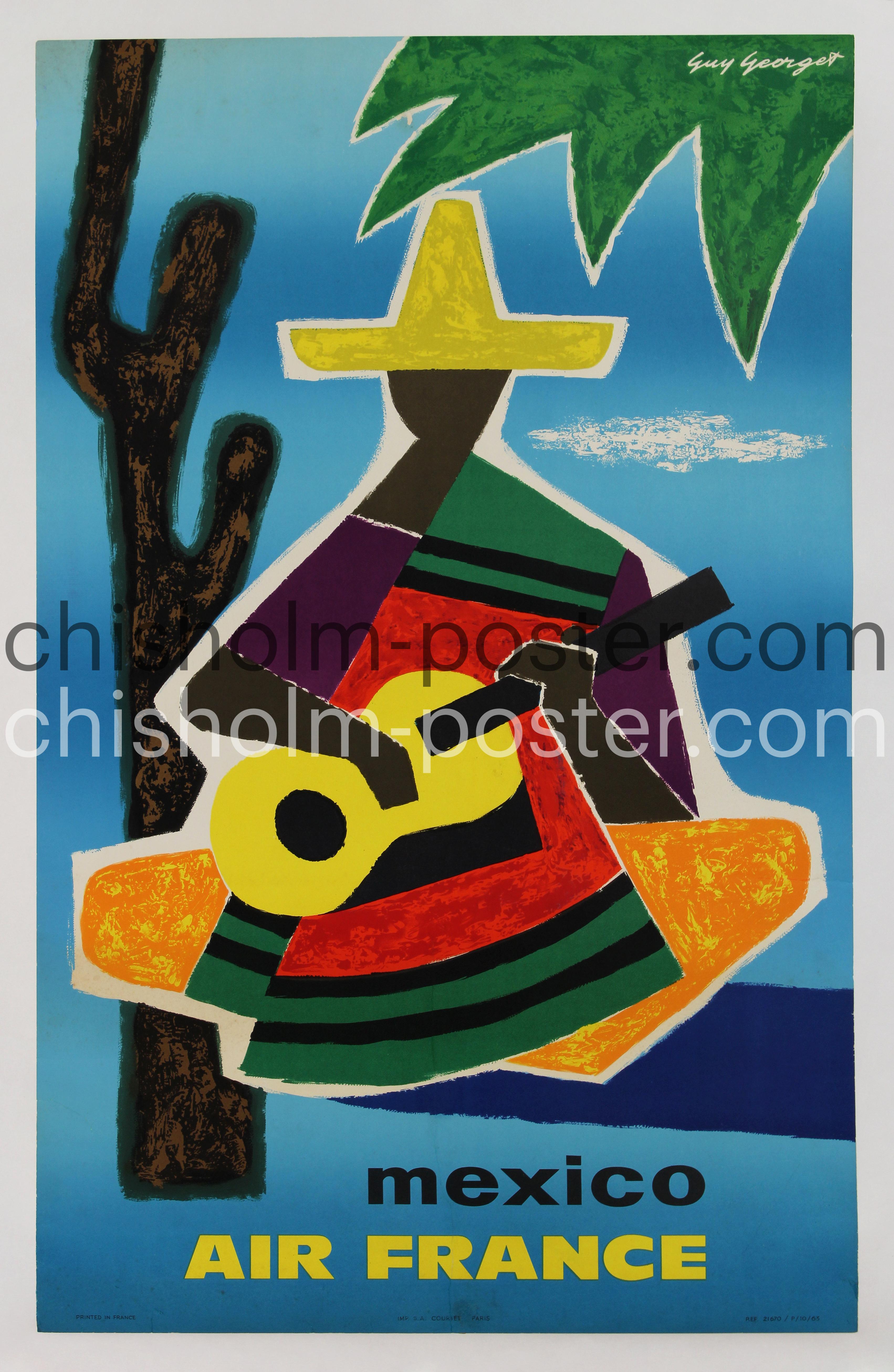 Colorful abstract poster for Air France flights to Mexico by Guy Georget.