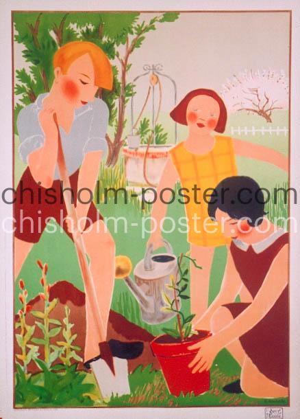 Original Vintage Poster: Children Gardening (No Text)