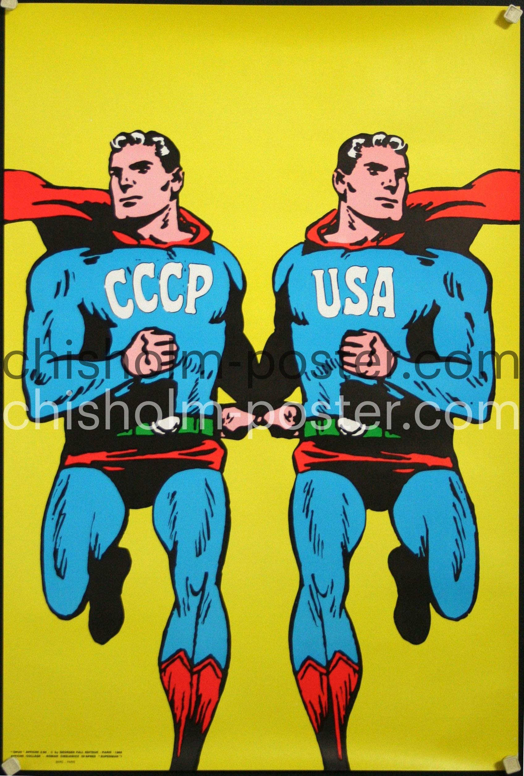 Superman, cover image for Opus Magazine, by Roman Cieslewicz, 1968 depicting rival US and Russian versions of the comic-book heros. This poster was used on the book cover : Cold War Modern: Design 1945-70 at the Victoria and Albert Museum, London