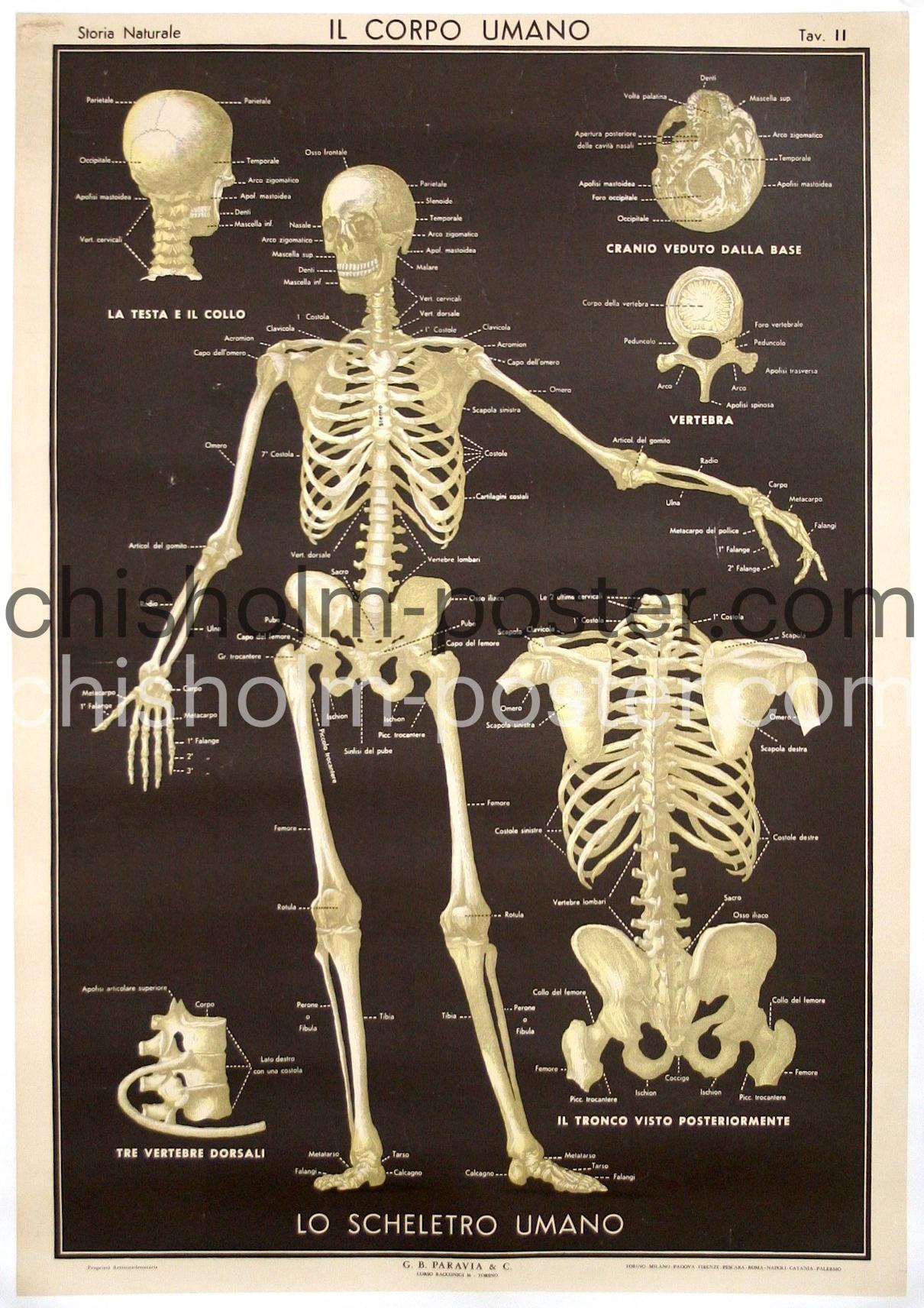 Original Vintage Poster: il Corpo Umano - Lo Scheletro
