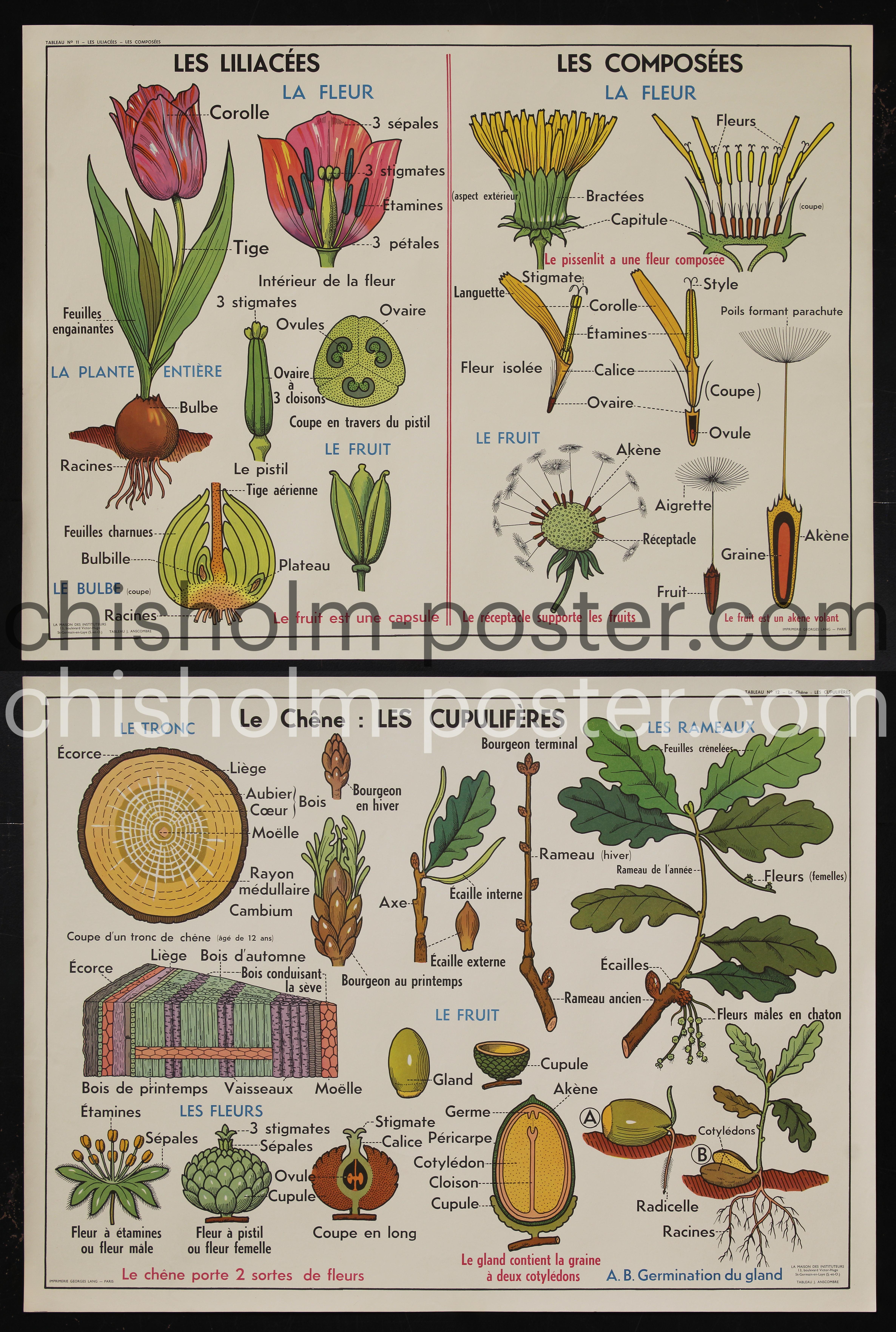 Original Vintage Poster: Les Liliacees & Les Composees / Les Cupuliferes