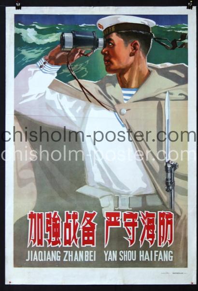 Original Vintage Poster: Chinese Political (304) Jiaqiang Zhanbei Yan Shou Haifang