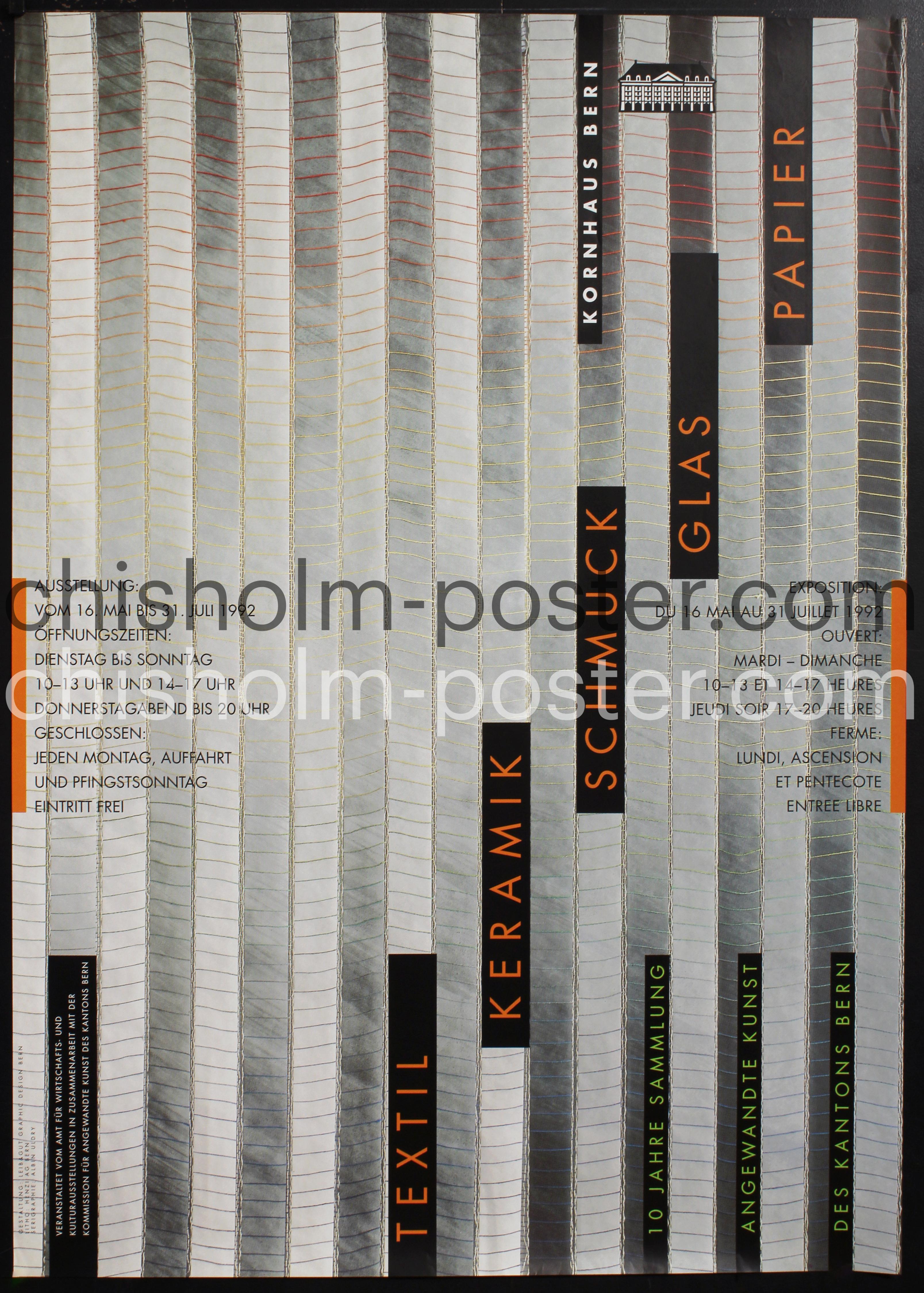 Original Vintage Poster: Kornhaus Bern - Textil Keramik Schmuck Glas Papier