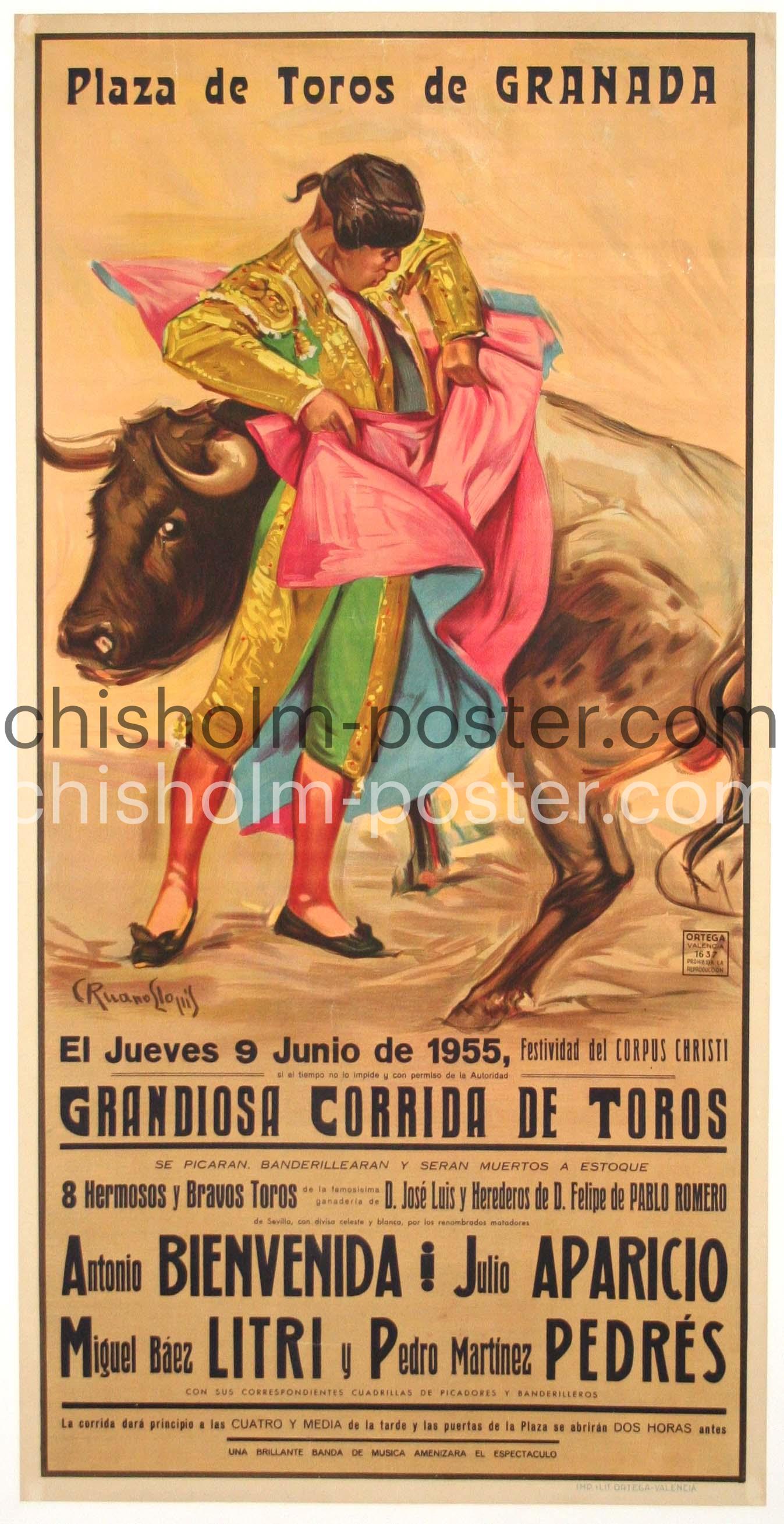 Original Vintage Poster: Plaza de Toros de Granada, 1955