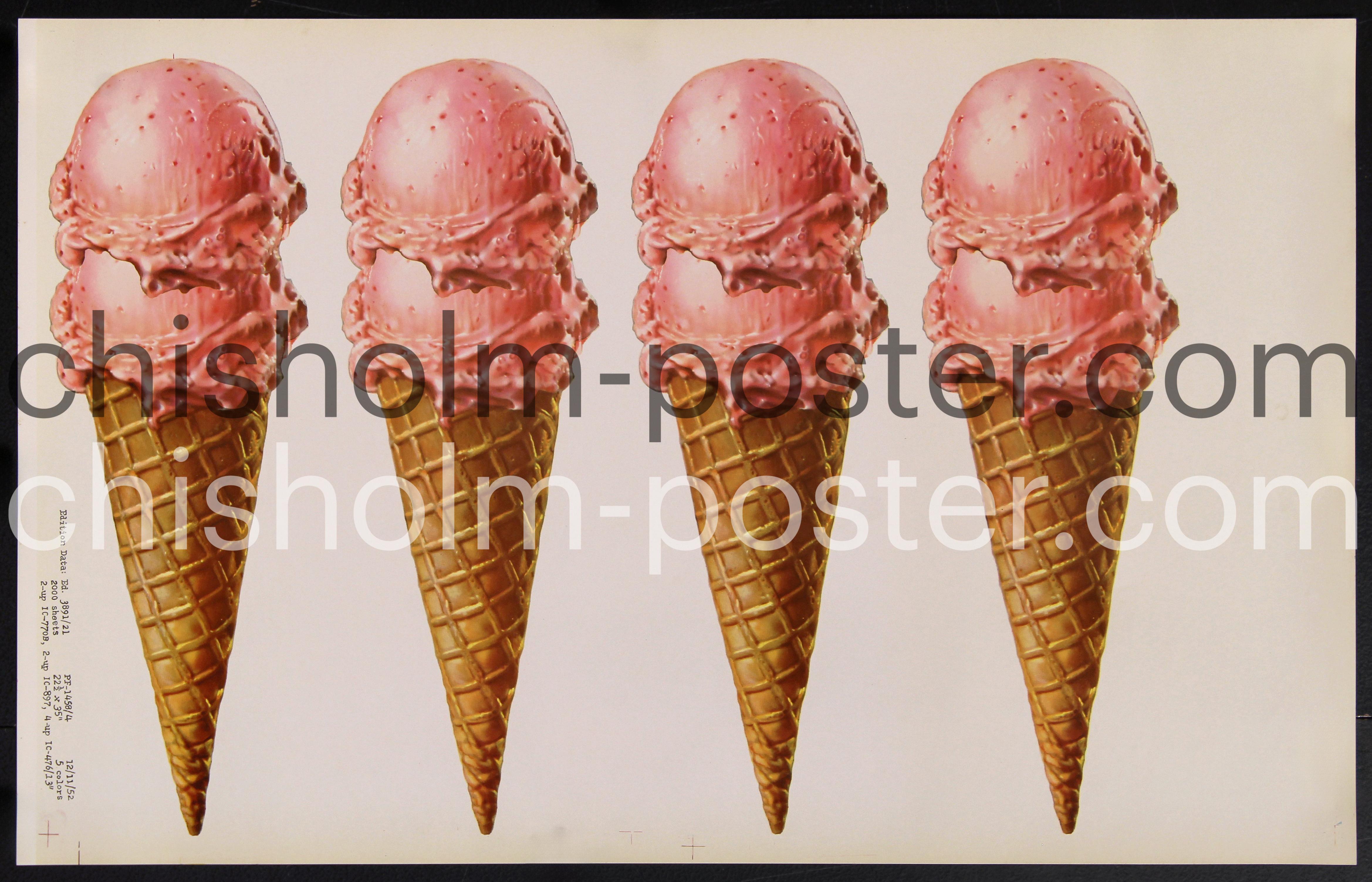 Original Vintage Poster: Four Pink Ice Cream Cones (Uncut Die-Cut)