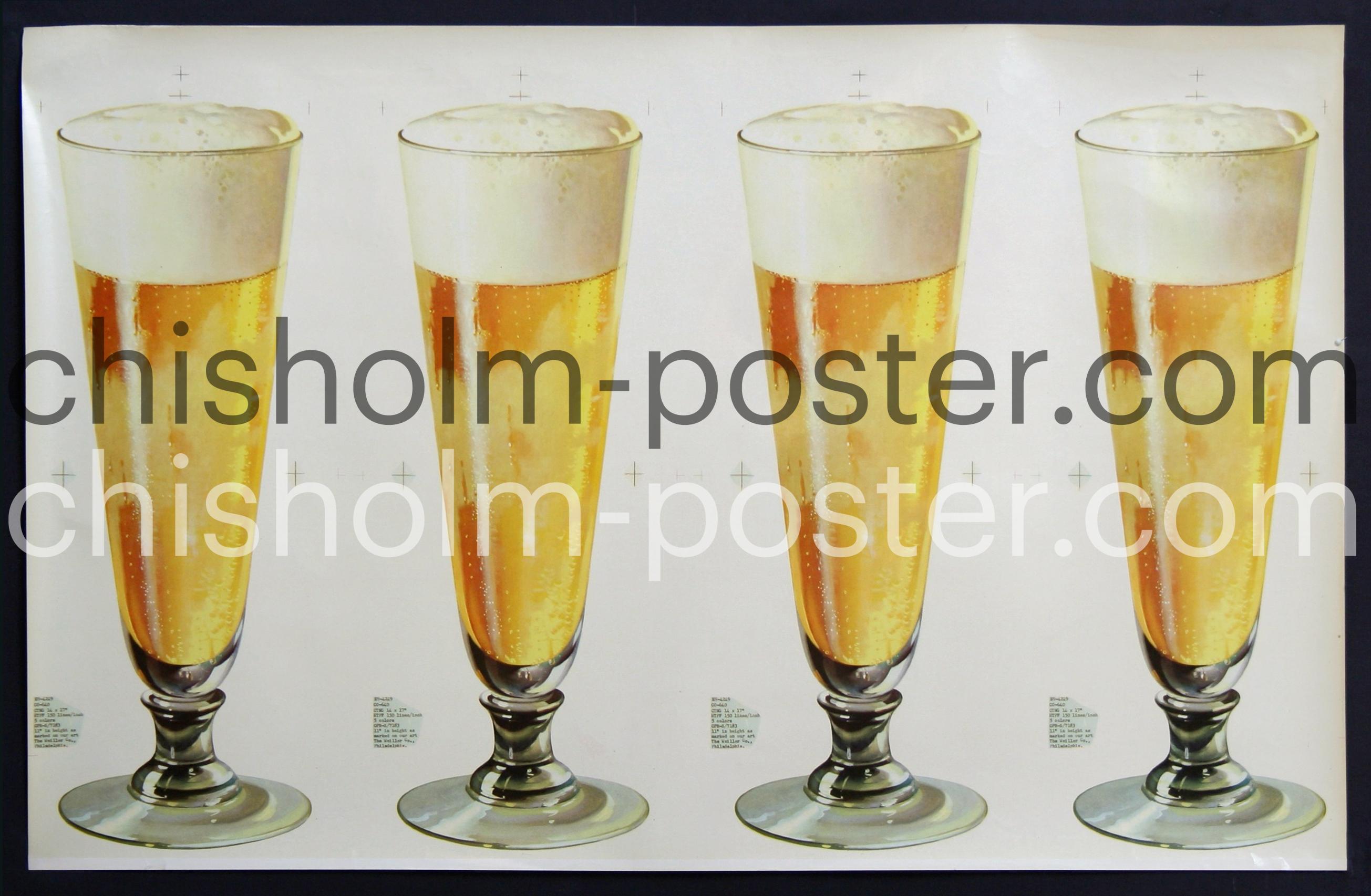 Original Vintage Poster: Four Glasses of Beer (Larger) (Uncut Die-Cut)