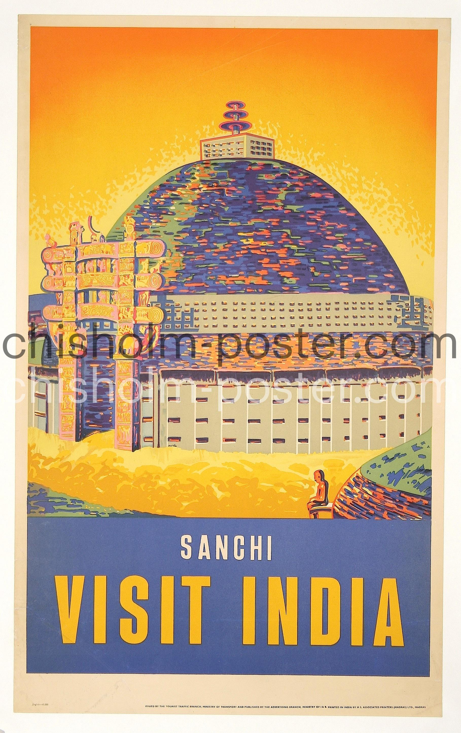 Original Vintage Poster: Sanchi - Visit India (The Great Stupa)