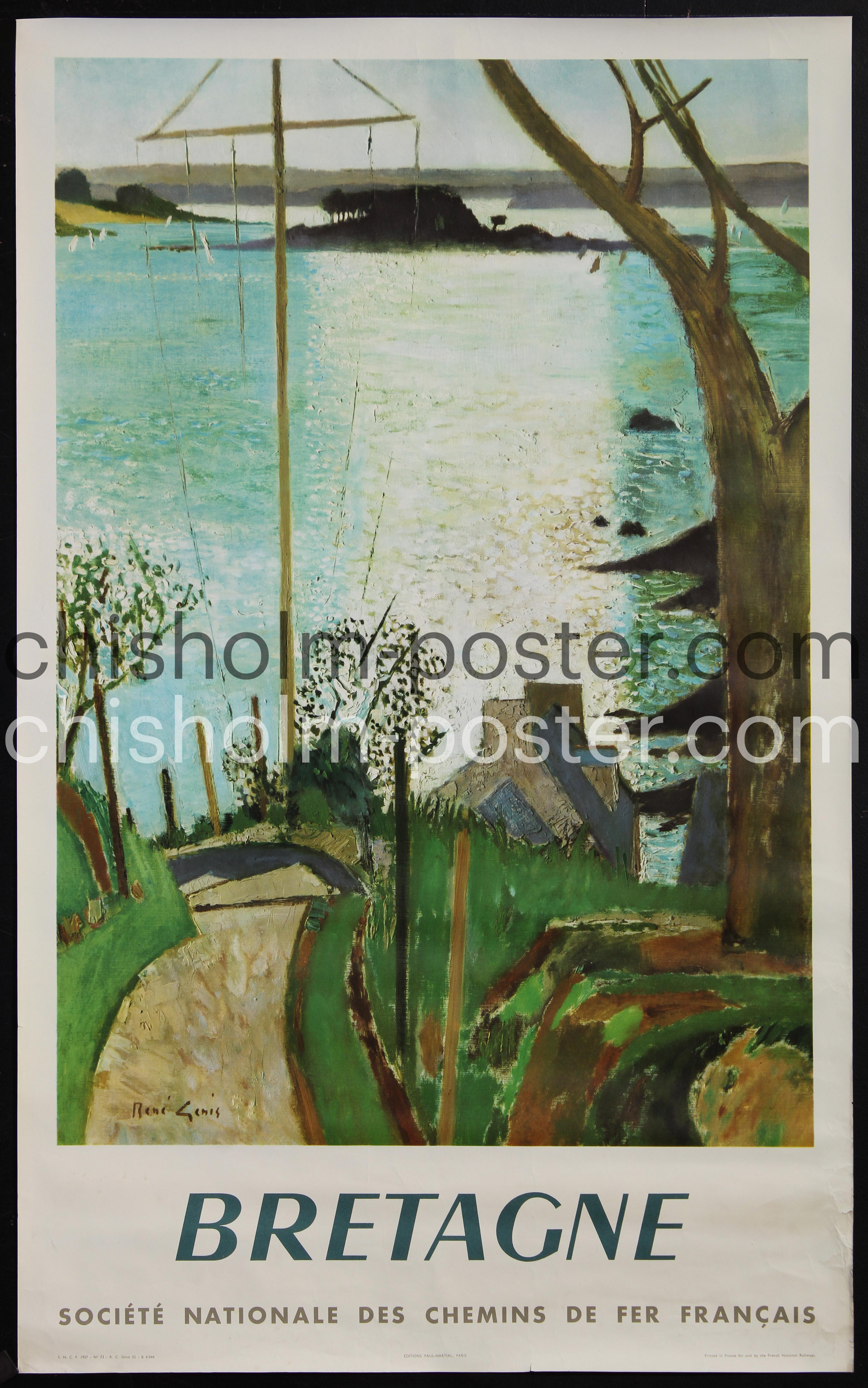1959 Shimmering seaside poster of for Société Nationale Des Chemins De Fer Français/ French National Railways promoting travel to the Bretagne region.