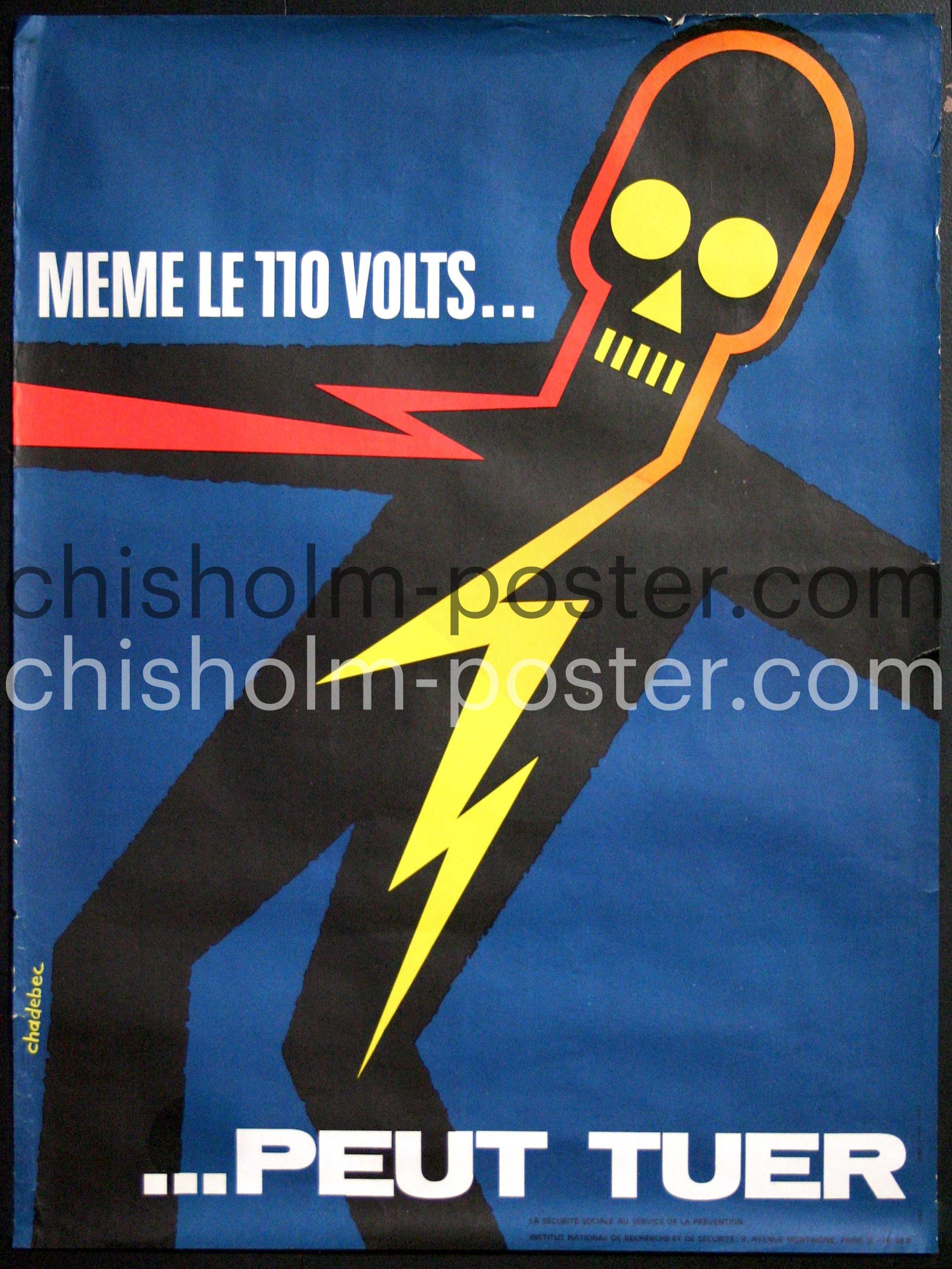 Original Vintage Poster: INRS - Meme le 110 Volts Peut Tuer