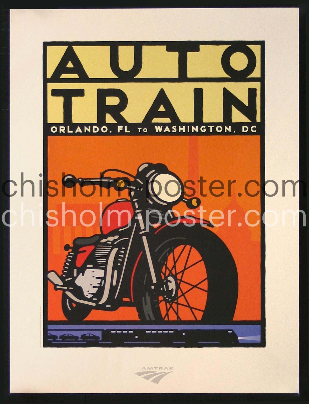 Original Vintage Poster: Amtrak- Auto Train- Autotrain (Orlando to Washington MOTORCYCLE)