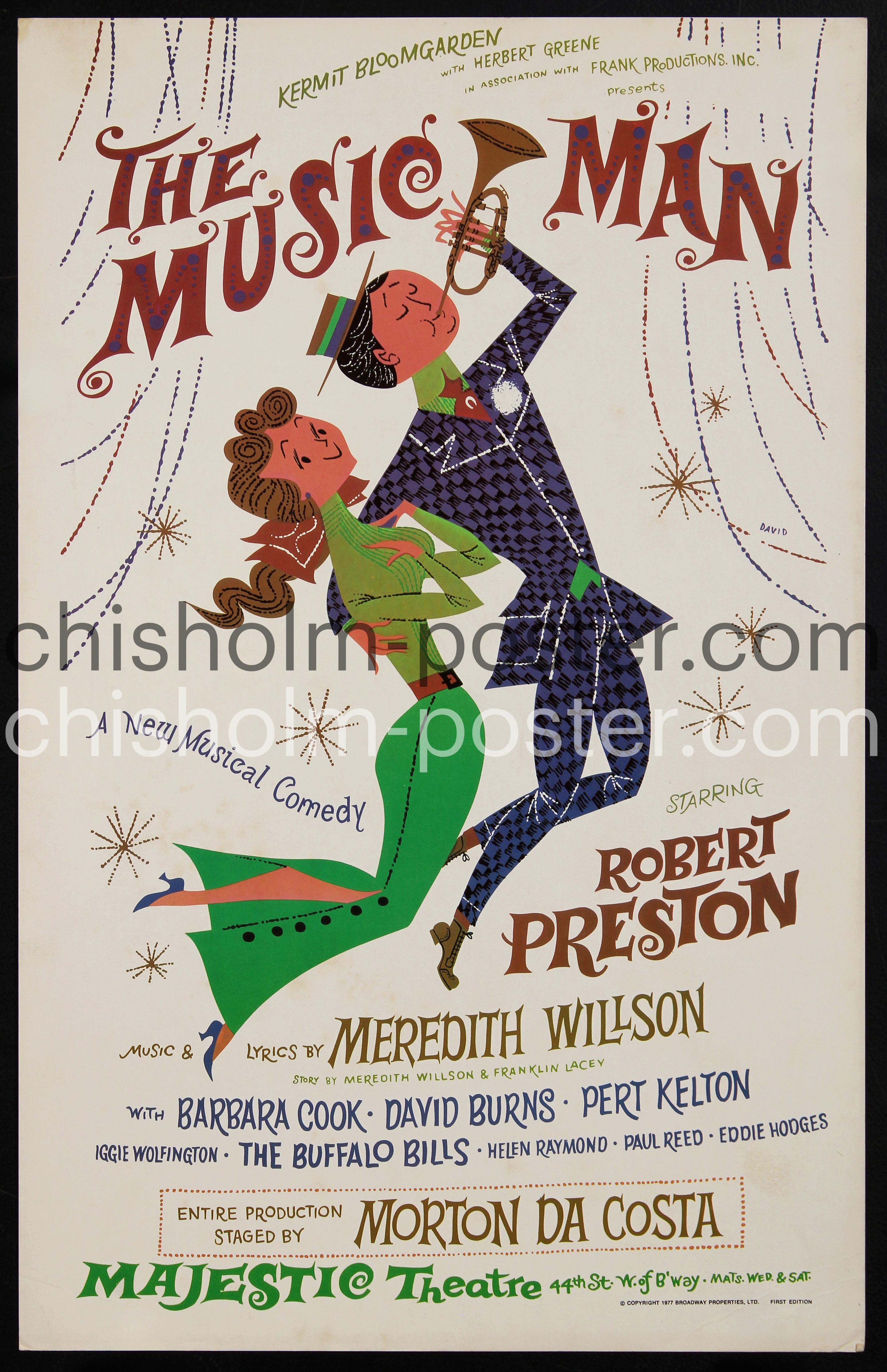 Original Vintage Poster: The Music Man - Majestic Theater NYC (1977 Reproduction Window Card)