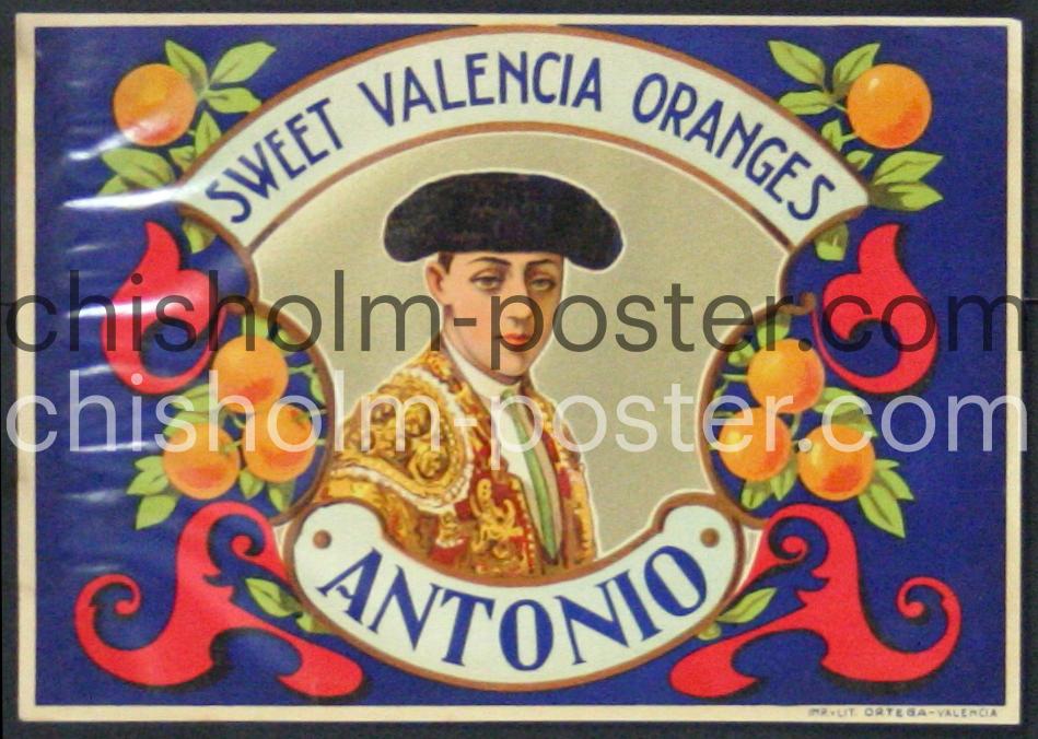 Original Vintage Poster: Sweet Valencia Oranges - Antonio - Fruit Crate Label