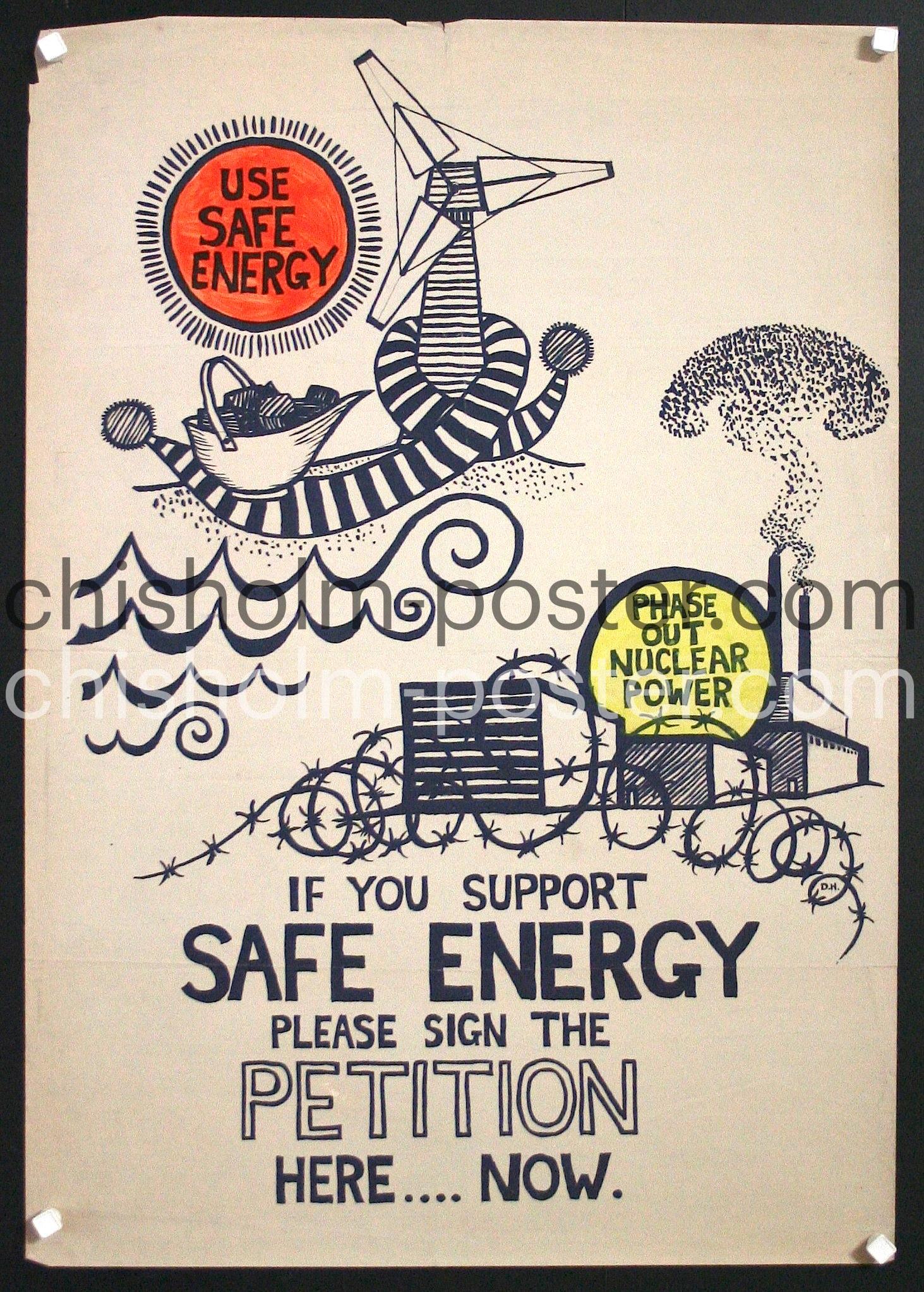 Original Vintage Poster: If You Support Safe Energy Please Sign the Petition Here... Now. Phase Out Nuclear Power