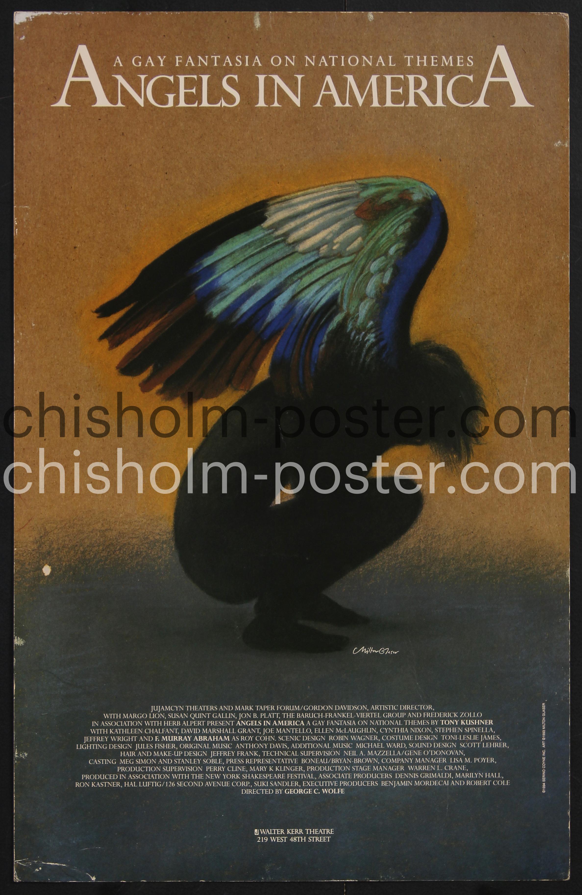 1993 Walter Kerr Theatre Broadway performance. Angels in America: A Gay Fantasia on National Themes is a two-part play by American playwright Tony Kushner. The work won numerous awards, including the Pulitzer Prize for Drama, the Tony Award for Best Play, and the Drama Desk Award for Outstanding Play. Part one of the play premiered in 1991, followed by part two in 1992. Its Broadway opening was in 1993. NOTE: Some creasing and edge-wear but overall good to very good.