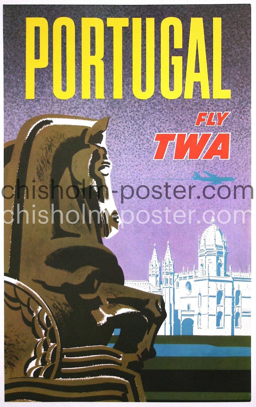 Original Vintage Poster: Fly TWA - Portugal (3) Belem Park