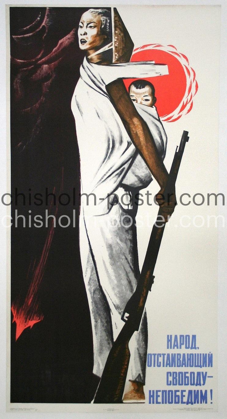 Original Vintage Poster: Po 1624 НАРОД ОТСТАИВАЮЩИЙ СВОБОДУ- НЕПОБЕДИМ!