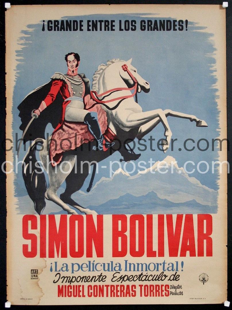 1942. Some minor staining at bottom left. This can easily be remedied with linen-backing. Simón Bolívar was a Venezuelan military leader who was instrumental in the revolutions against the Spanish empire.