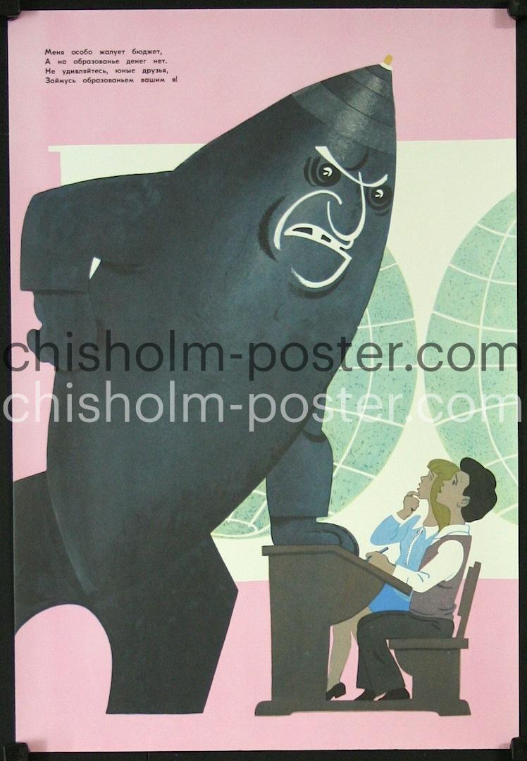 Russian Political Cartoon about the lack of funding for education from series called "Capitalism Without Masks" Small piece probably from a portfolio of political posters.