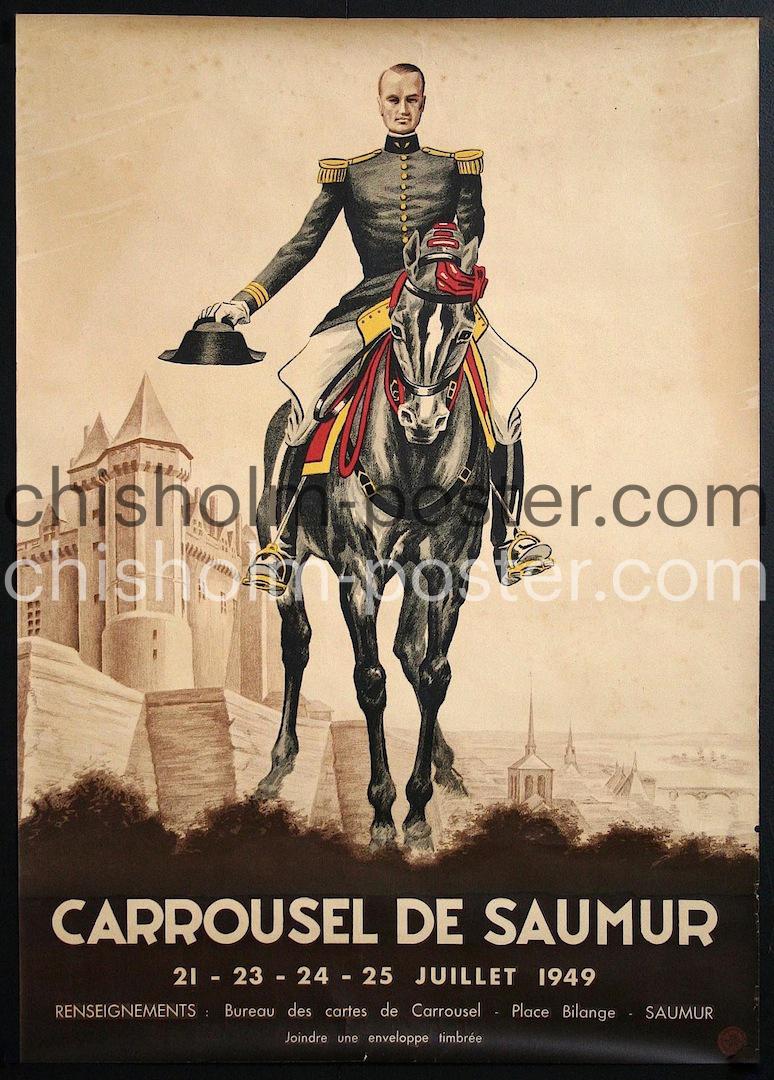 Handsome piece from 1949. Military Equestrian Show "The École Nationale d'Équitation, the French military riding academy is at Saumur in western France. It also performs as an equestrian display team. This military troop was founded in 1828, and gets its name from the black uniforms that are still used today. It is one of the most prestigious horsemanship schools in the world." NOTE: Some foxing and spots, but otherwise very good condition.