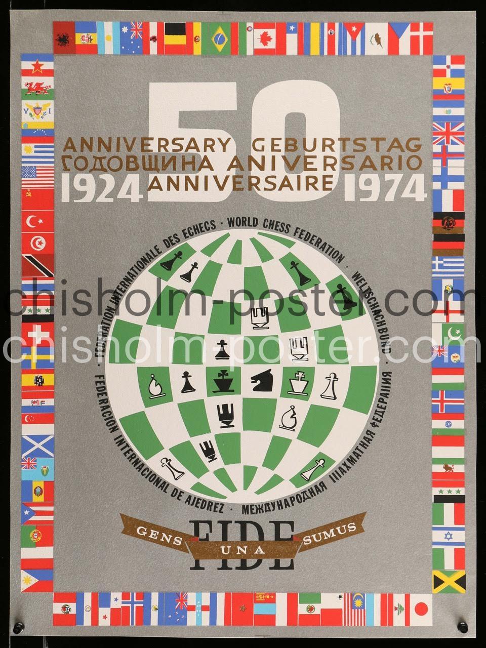 Original Vintage Poster: FIDE 50th Anniversary - World Chess Federation