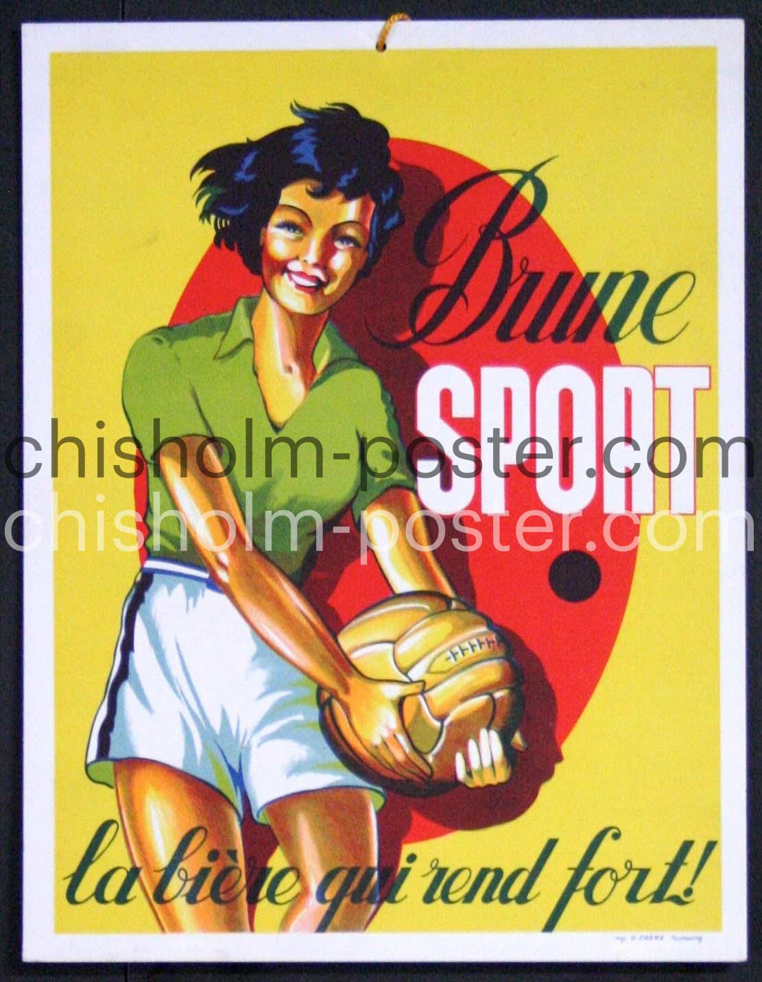 Original Vintage Poster: Brune Sport - La Biere Qui Rend Fort! - Small Point of Purchase