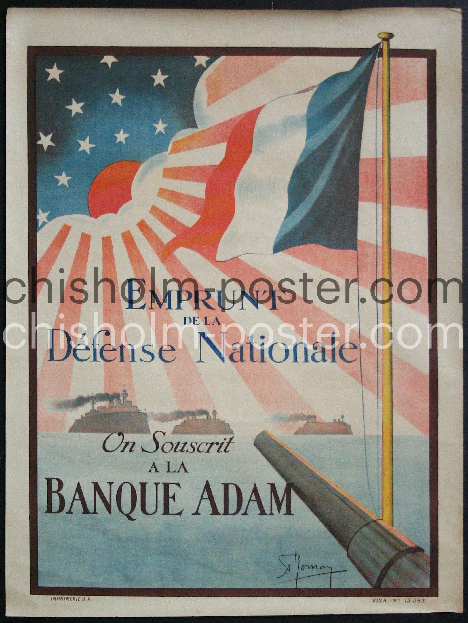Original Vintage Poster: Emprunt de la Defense Nationale - On Souscrit a la Banque Adam