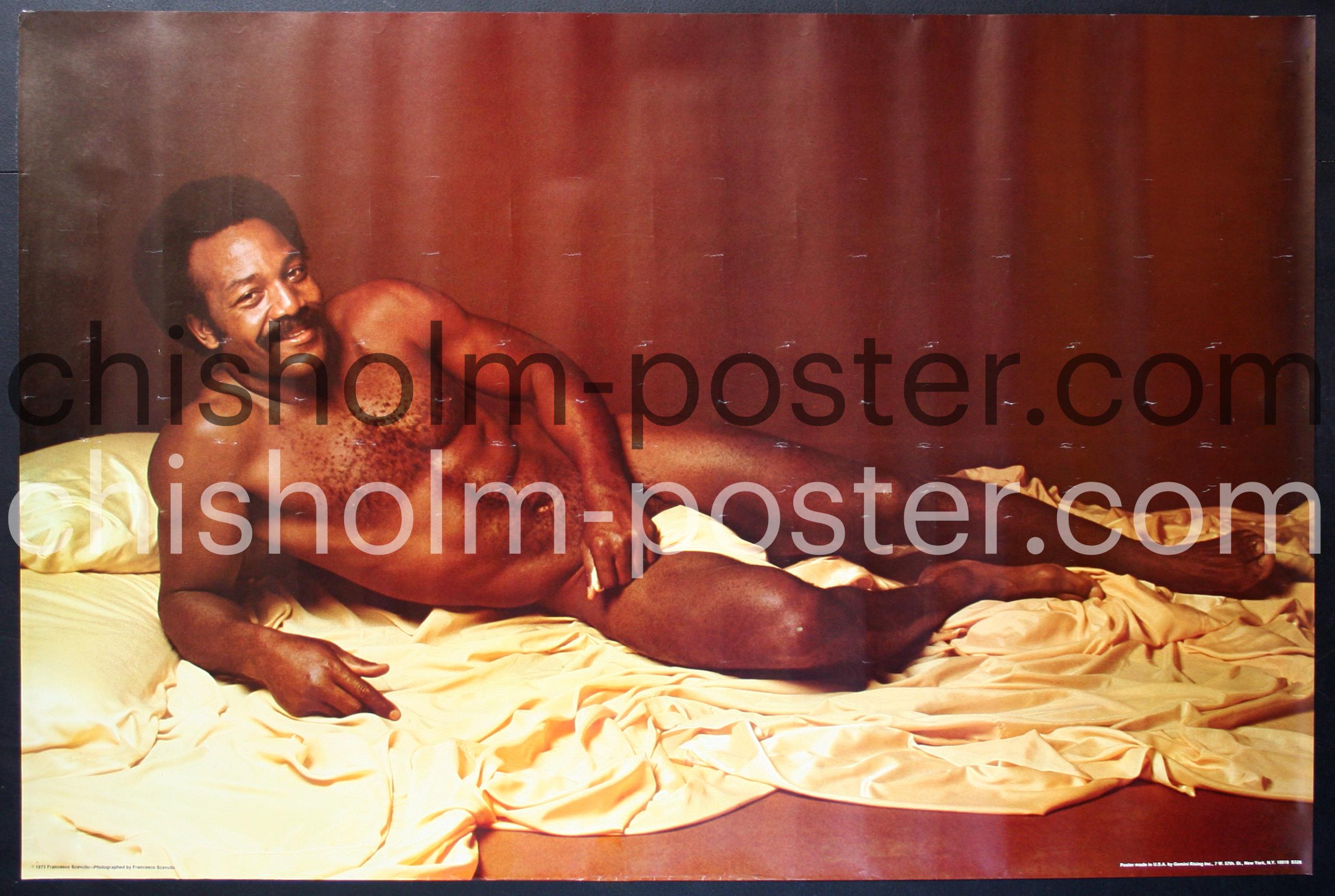 1973 Gemini Rising poster of naked football player Jim Brown in the style of the famous Cosmopolitan centerfold of Burt Reynolds. Photo: Francesco Scavullo.