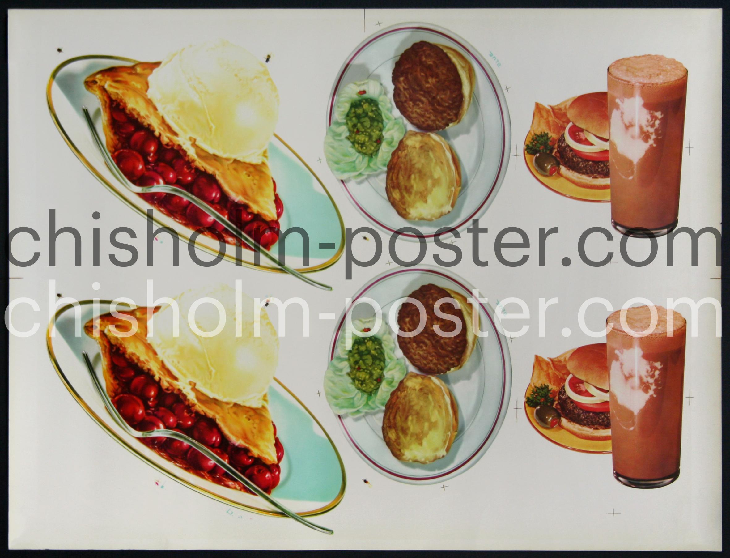 Original Vintage Poster: Cherry Pies, Hamburgers, and Chocolate Ice Cream Milk Shakes (Uncut Die-Cut)