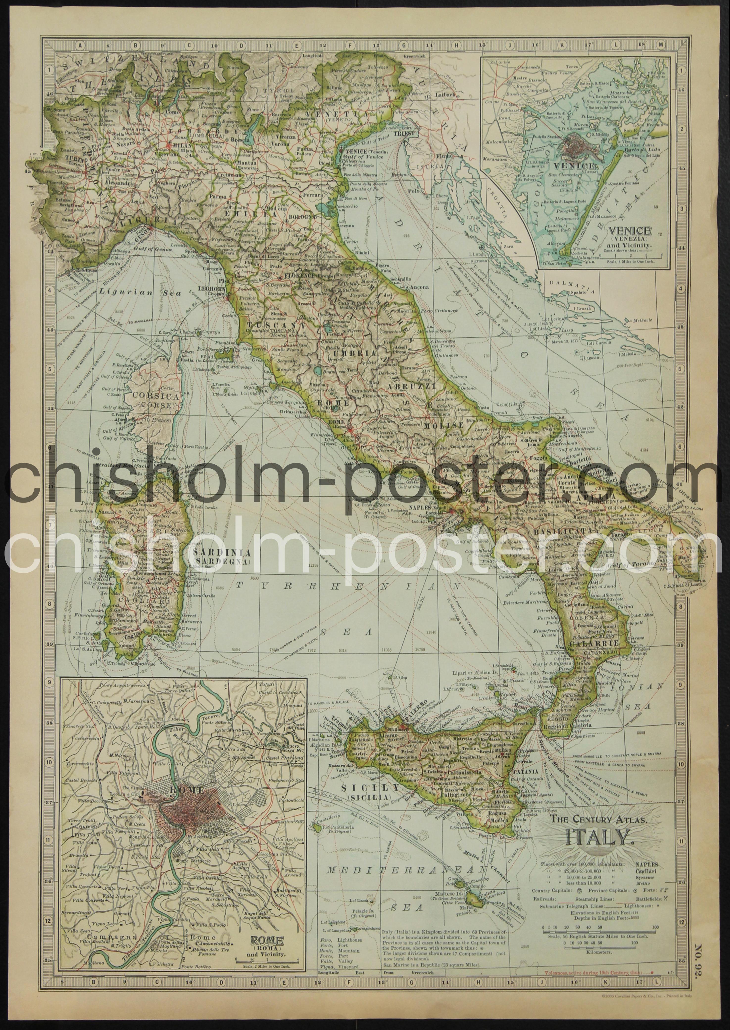 Original Vintage Poster: Map of Italy - The Century Atlas