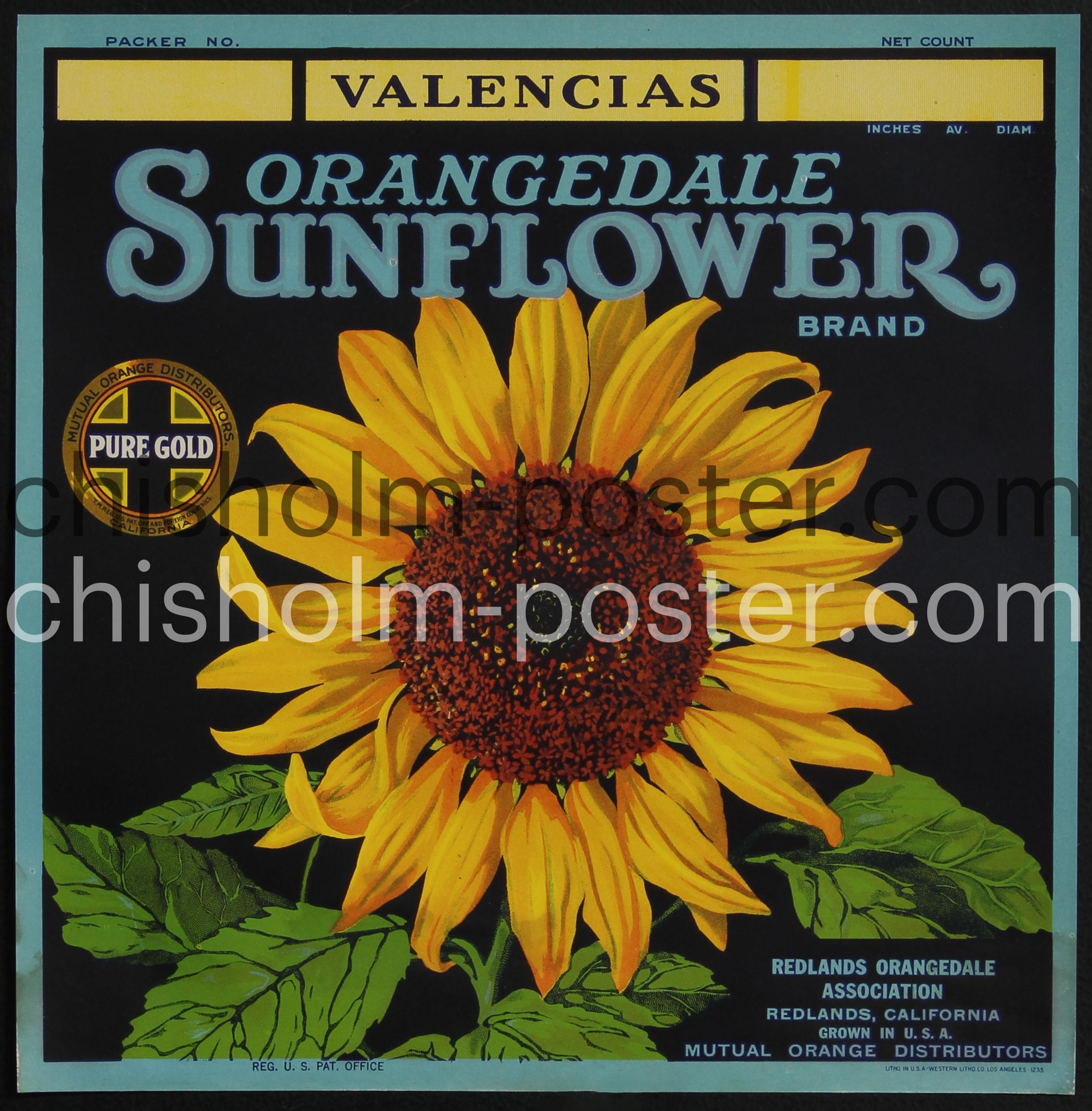 Original Vintage Poster: Orangedale Sunflower Brand Valencias Orange - Fruit Crate Label