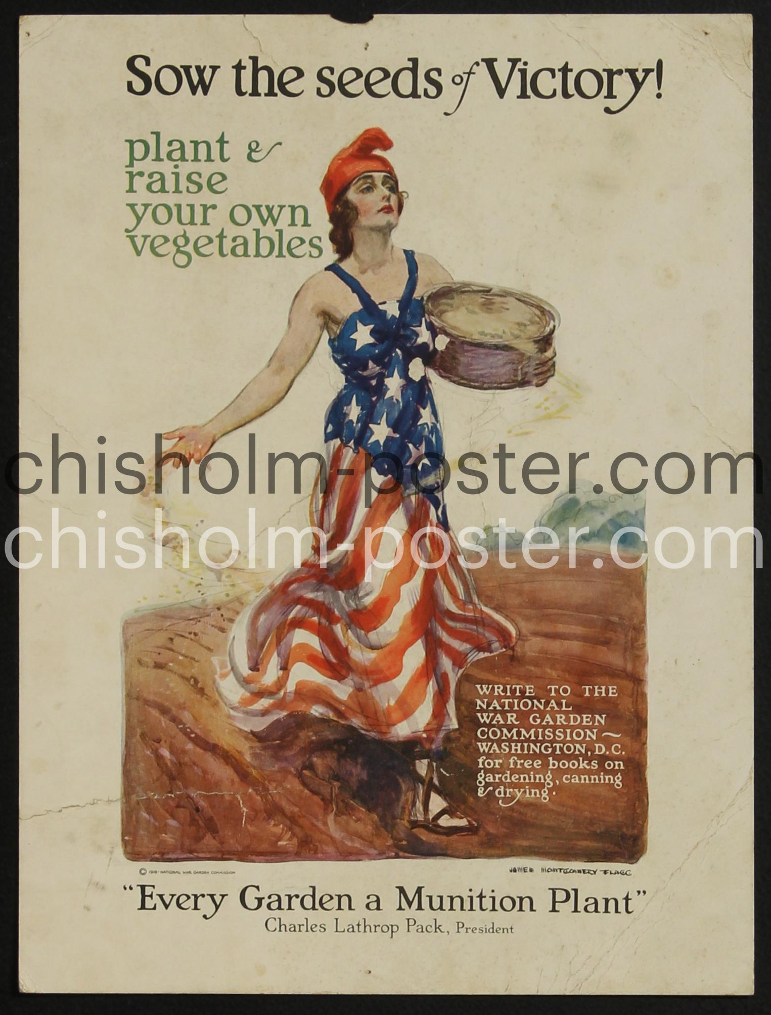 Original Vintage Poster: Sow the Seeds of Victory! Plant & Raise Your Own Vegetables - Every Garden a Munition Plant