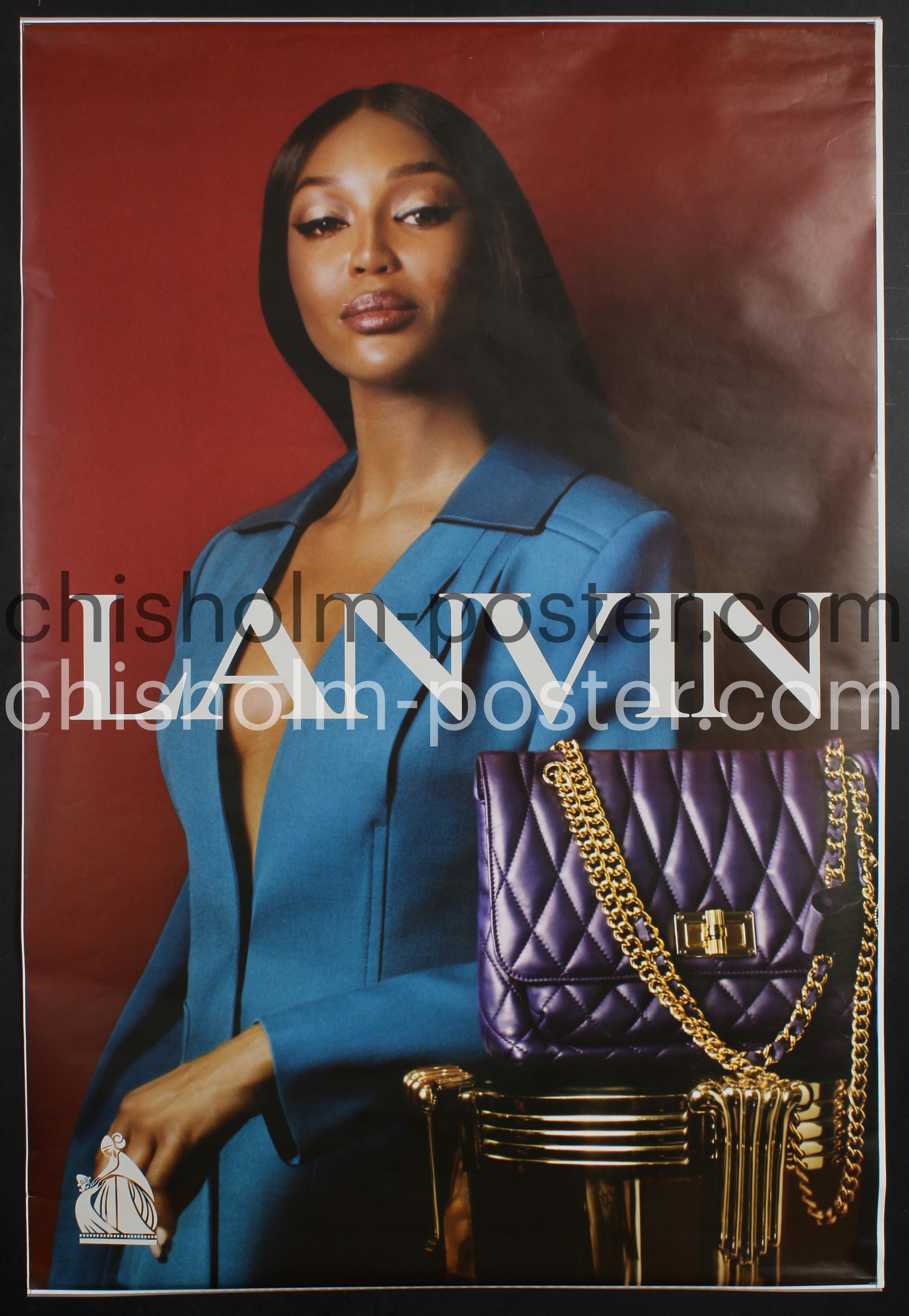 "The Happy Bag" 2022 Spring/Summer campaign French Bus Shelter poster with model Naomi Campbell. "Bruno Sialelli, photographer Luis Alberto Rodriguez and Carlos Nazario pooled their creative follies and inspirations to showcase Naomi Campbell in a Spring-Summer 2022 campaign that is equally precious and surrealistic." (Lanvin) NOTE: Has plastic strips attached top and bottom.