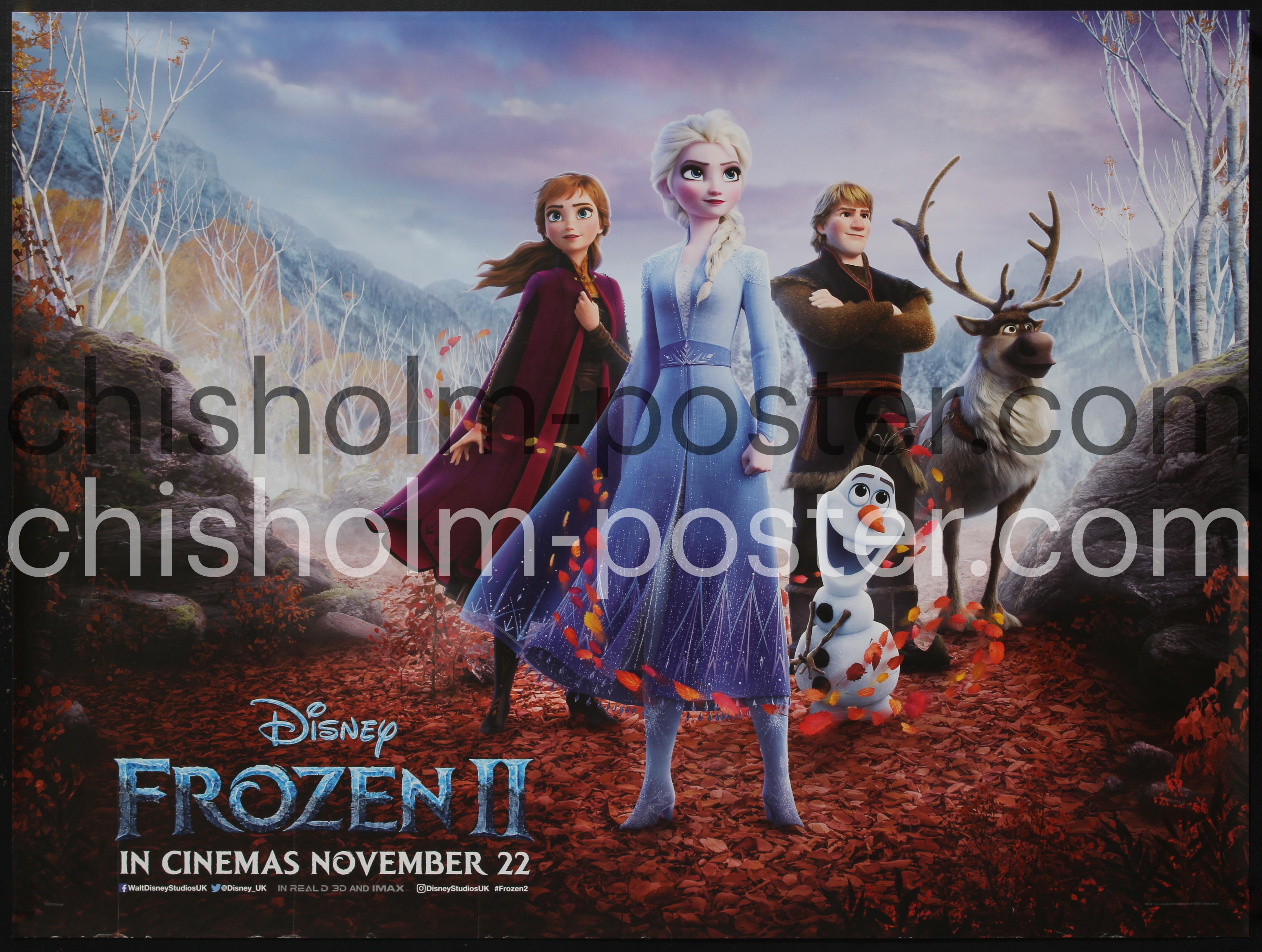 2019 British quad poster for the Disney sequel to the hit animation Frozen. MOVIE PLOT: Anna, Elsa, Kristoff, Olaf and Sven leave Arendelle to travel to an ancient, autumn-bound forest of an enchanted land.