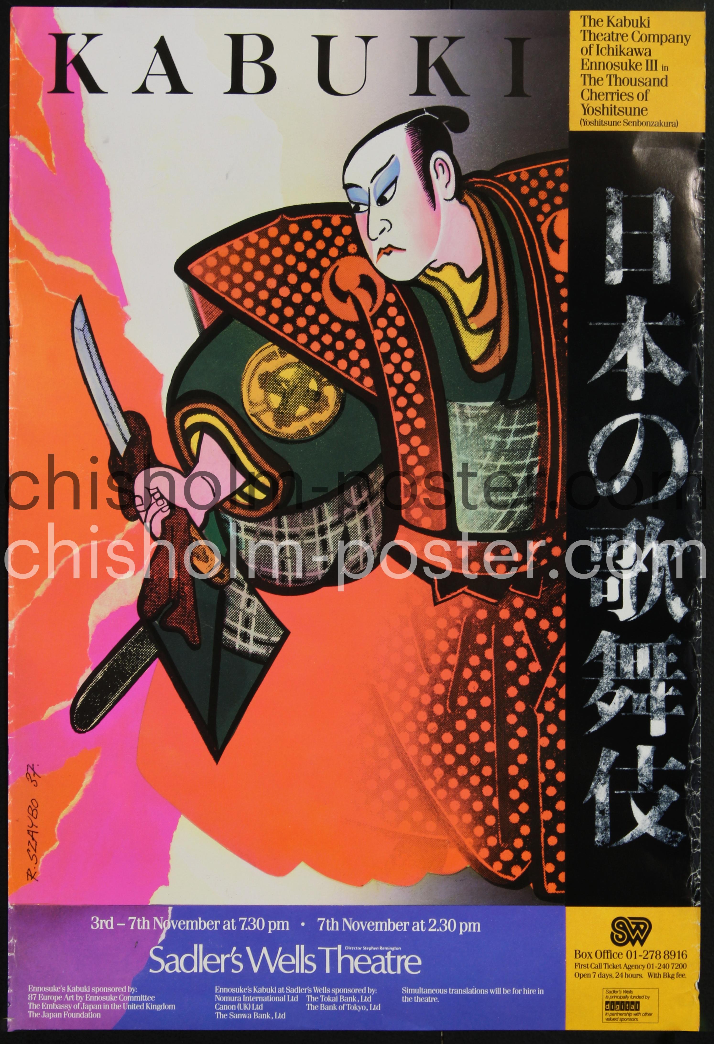 Original Vintage Poster: Kabuki - The Thousand Cherries of Yoshitsune - Saddler Well's Theatre London (British Window Card)
