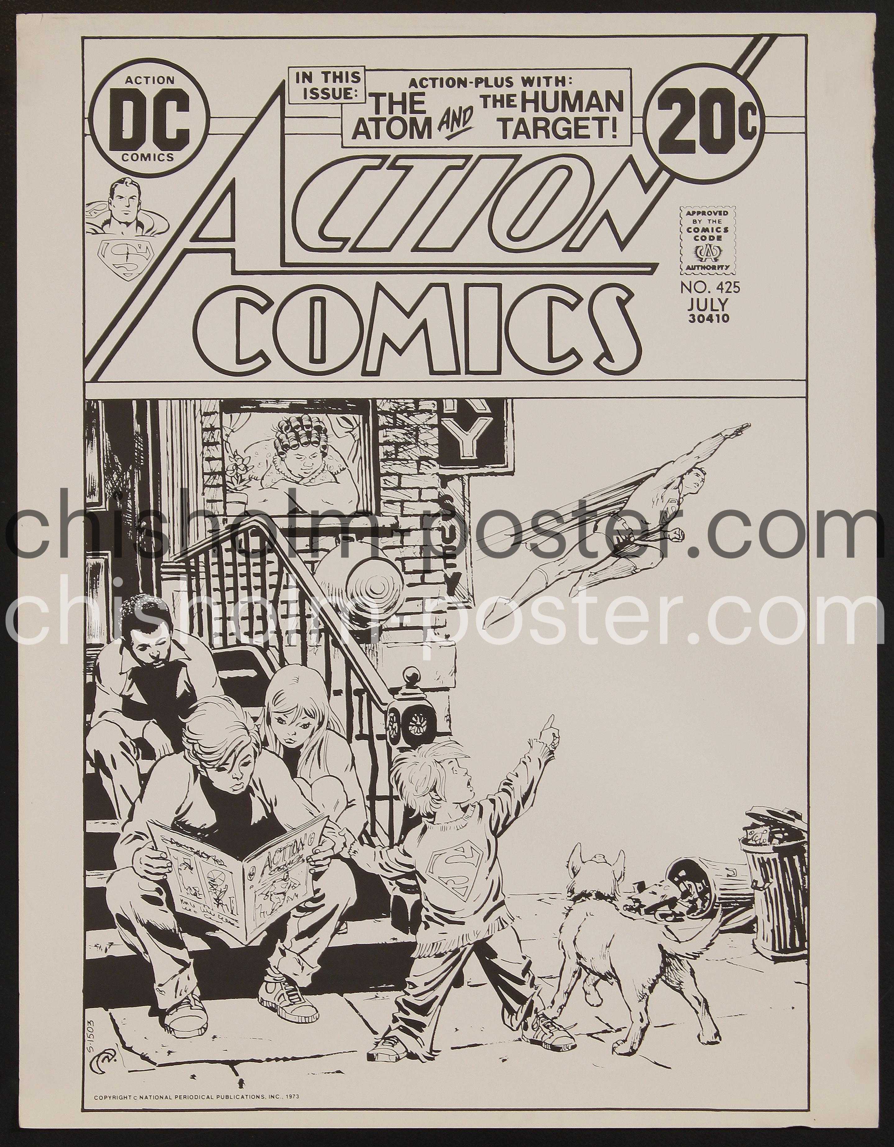 Original Vintage Poster: Action Comics - DC Comics - Superman, The Atom, The Human Target