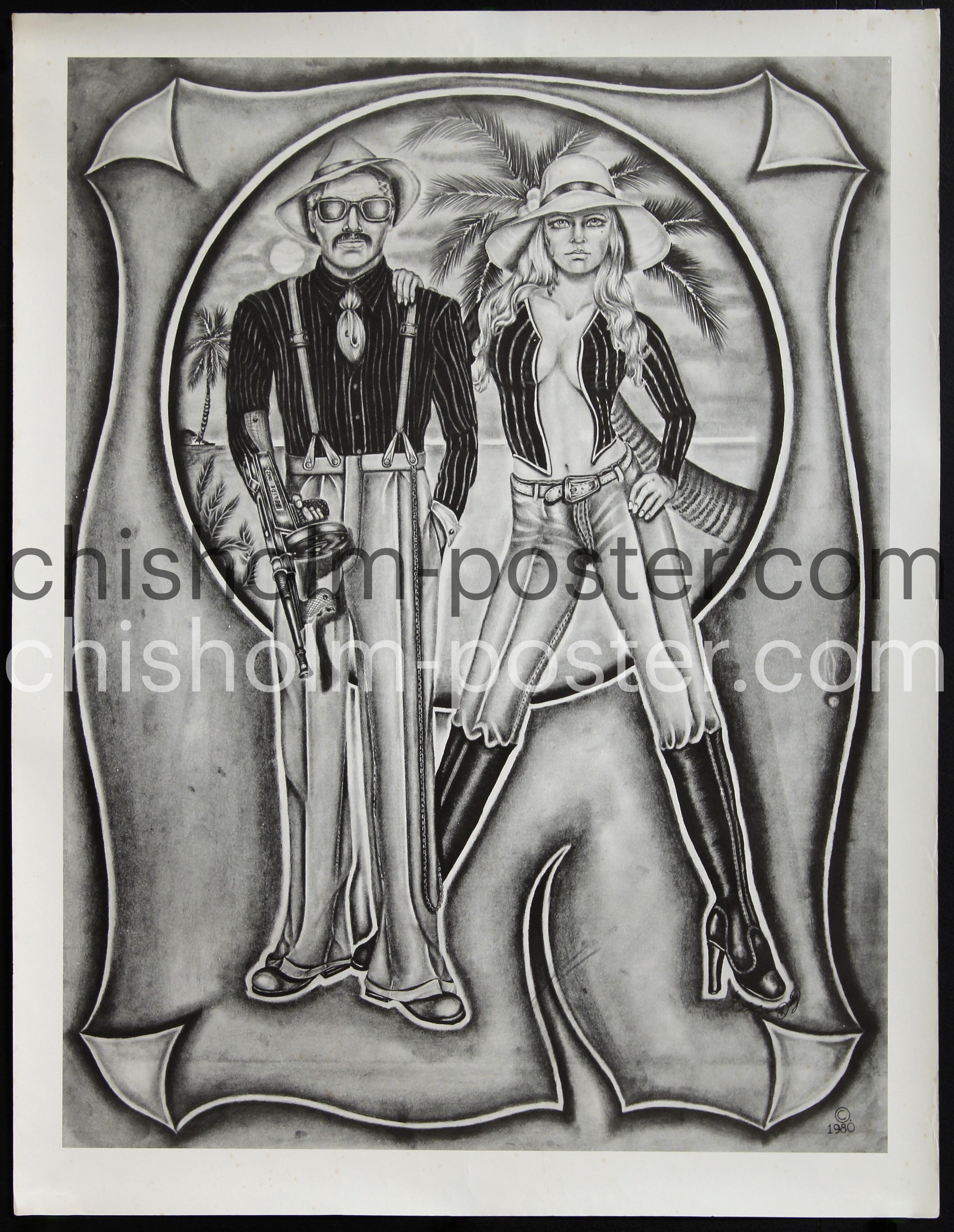 Original Vintage Poster: Cholo / Chola (Couple with Machine Gun)