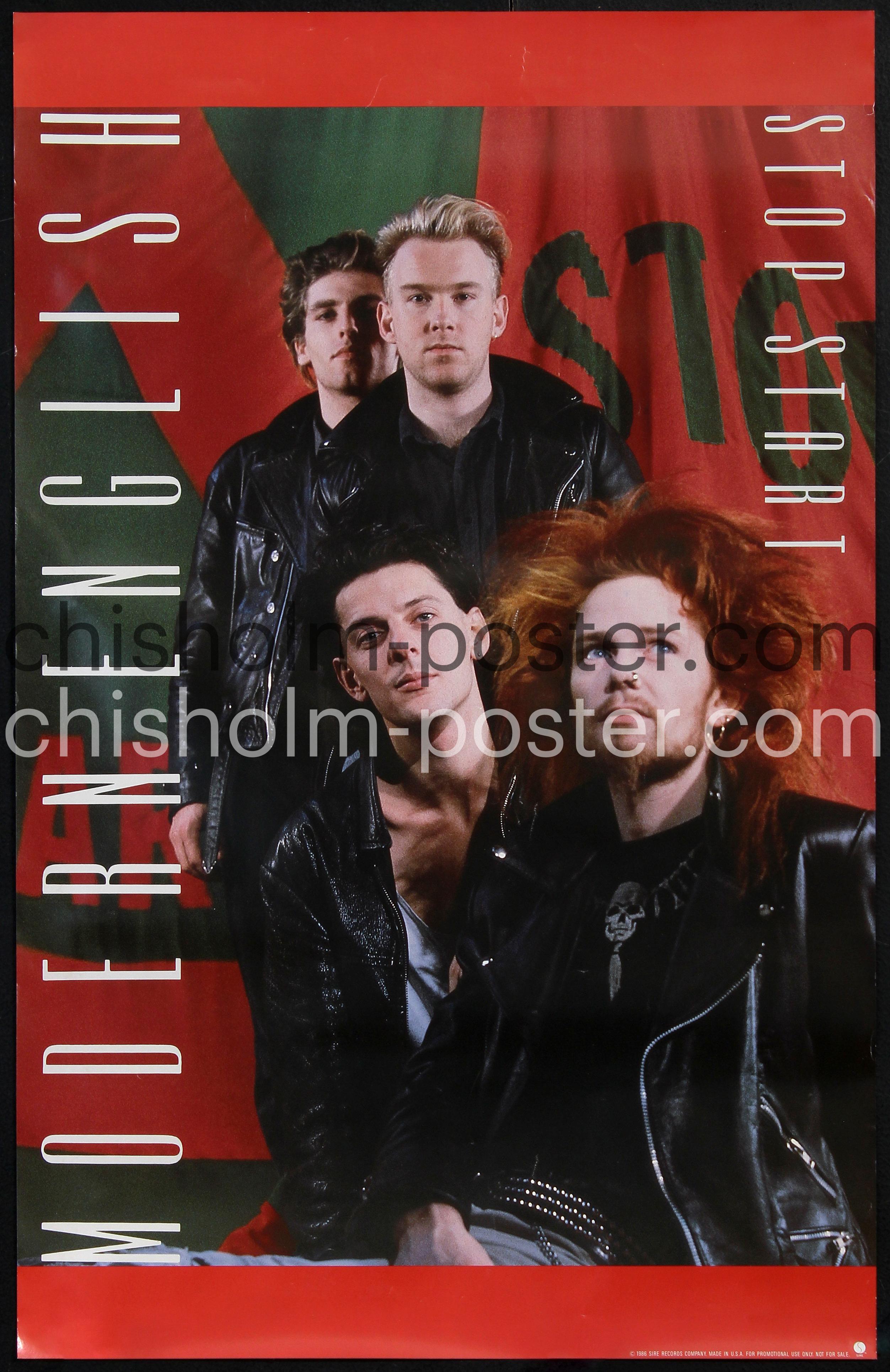 1986 Sire Records in-store promo poster for the New Wave band Modern English's album STOP START. The band is best known for their songs "I Melt with You", "Hands Across the Sea", and "Ink and Paper".